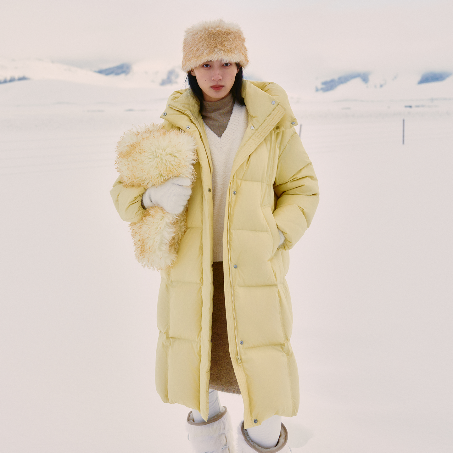 【陈都灵同款】艾莱依泡芙羽绒服女2025冬新款连帽加厚长款大被子