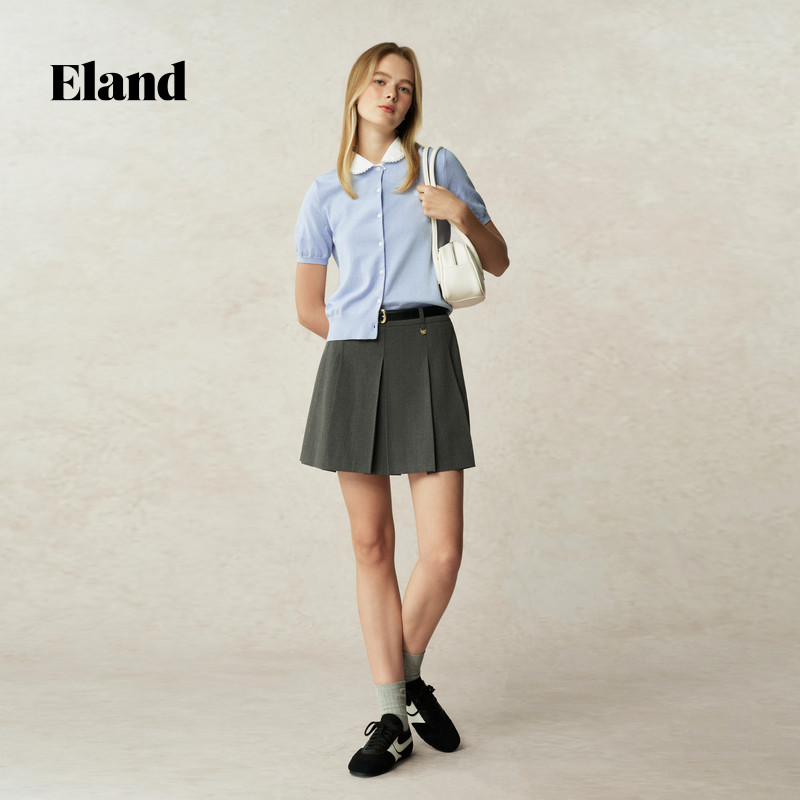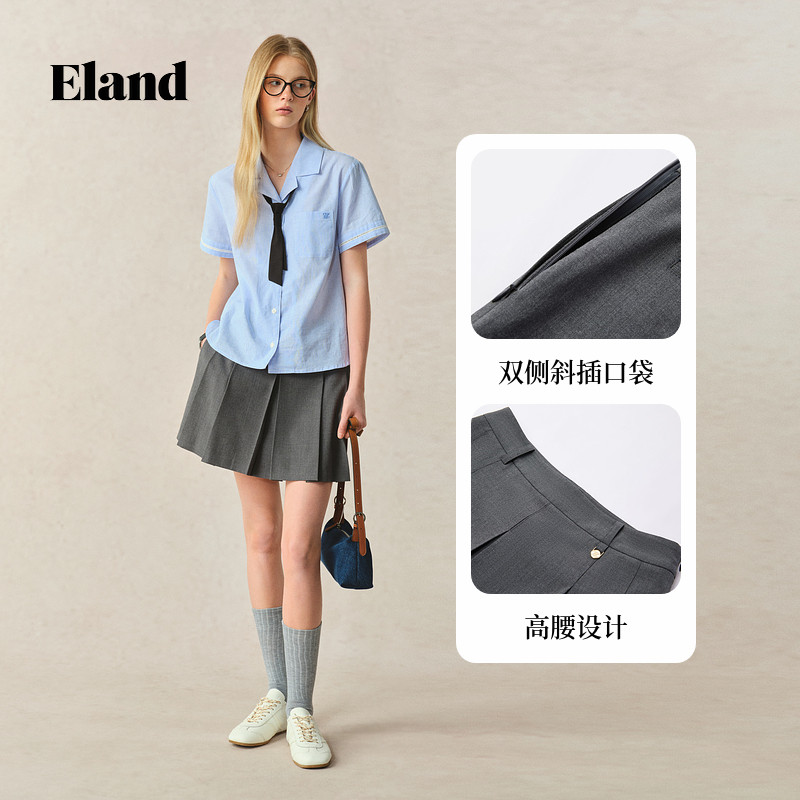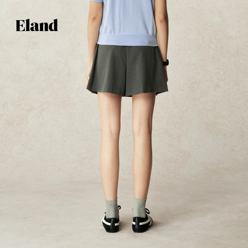 【四面弹】Eland衣恋短裤女纯色时尚高腰学院风A型显瘦裙裤夏季