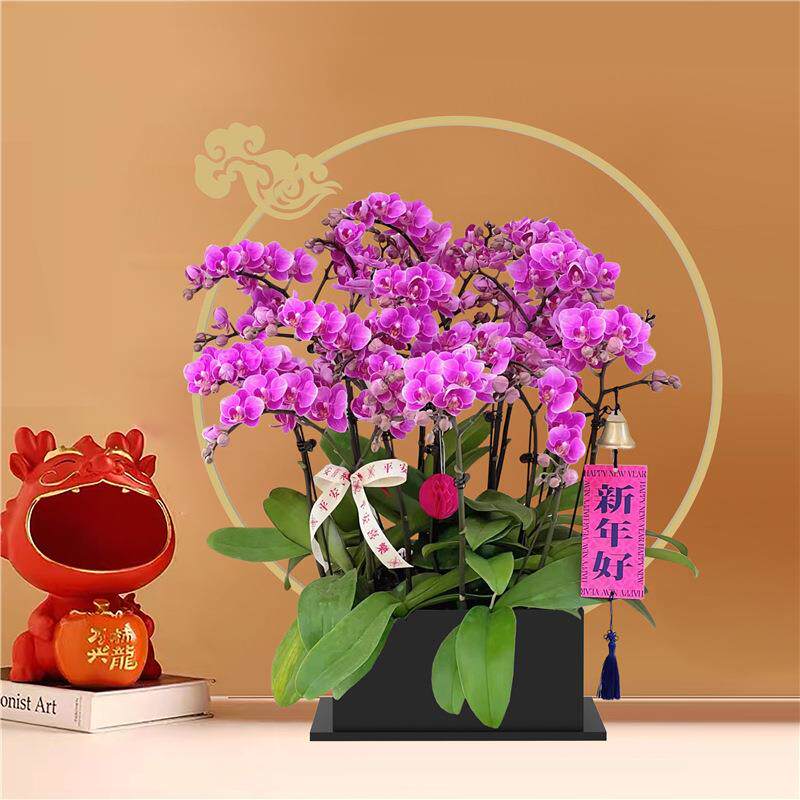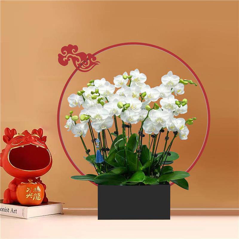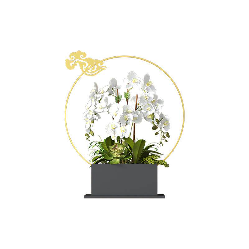 腾云新中式蝴蝶兰花盆年宵花银柳冬青插花器金属福桶客厅玄关摆件