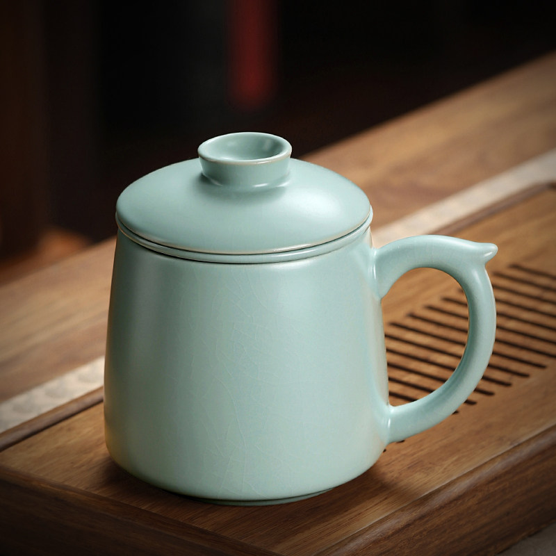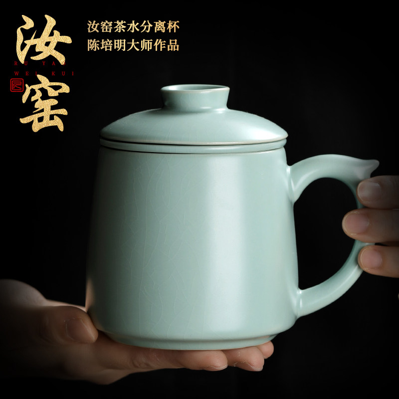 会议茶水分离茶杯高档陶瓷个人专用办公室汝窑泡茶杯喝茶的杯子