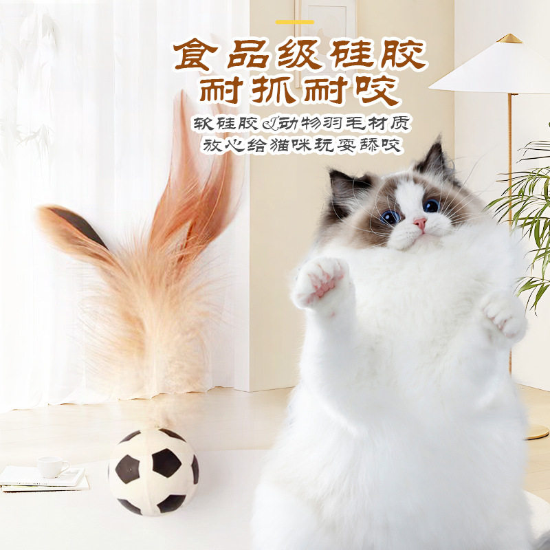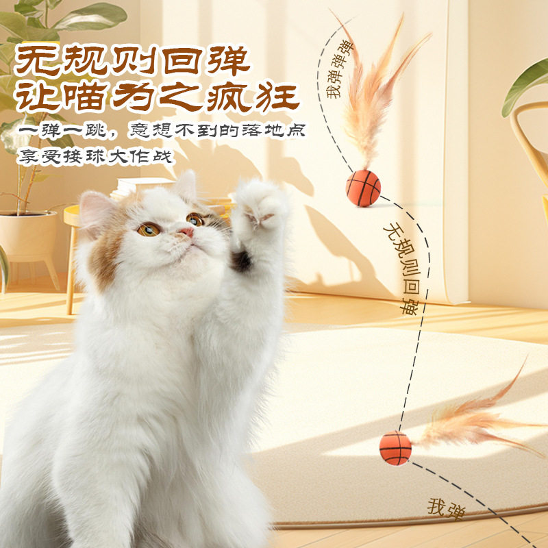 宠物羽毛逗猫球弹力球自嗨解闷互动发泄神器耐咬磨牙球逗猫棒玩具