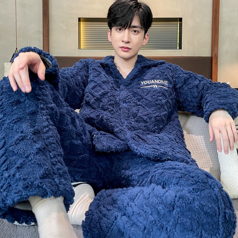 新款珊瑚绒睡衣男士秋冬款加厚套装加绒法兰绒男款冬季家居服大码