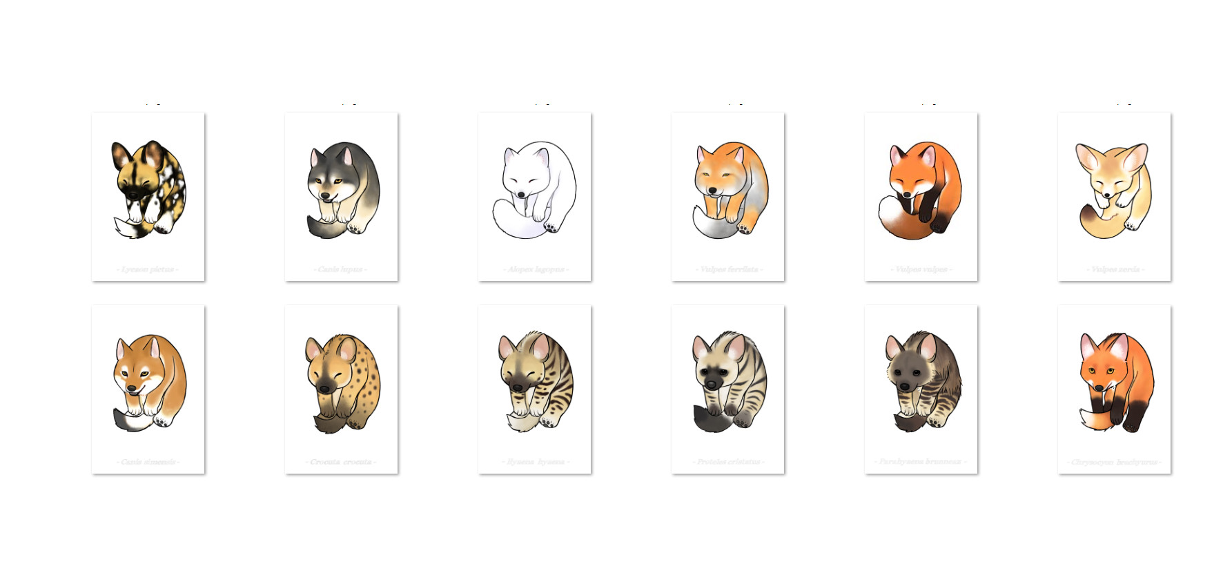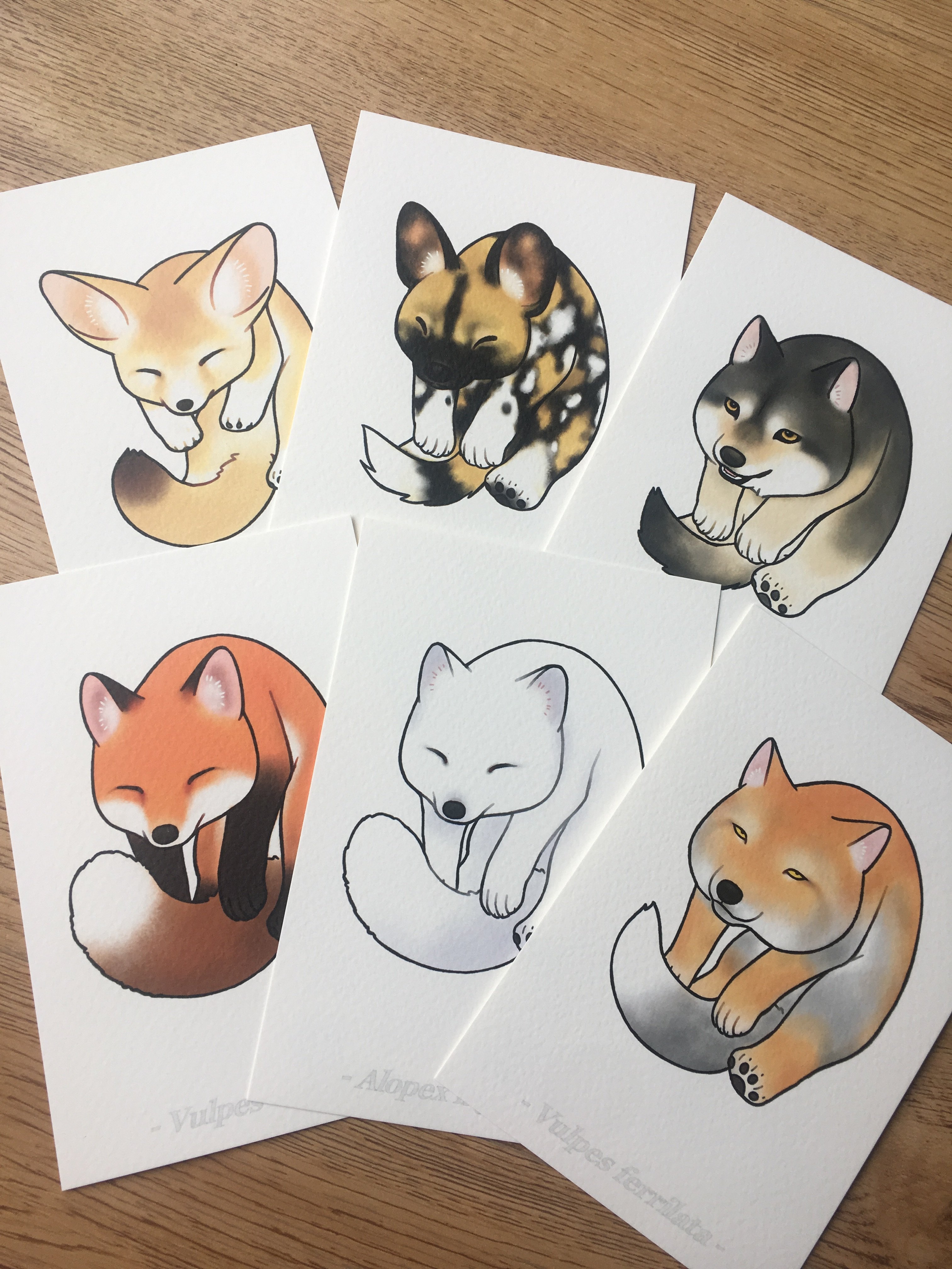 原创 犬科动物 狼狐狸赤狐北极狐耳廓狐藏狐非洲野犬 明信片 贺卡