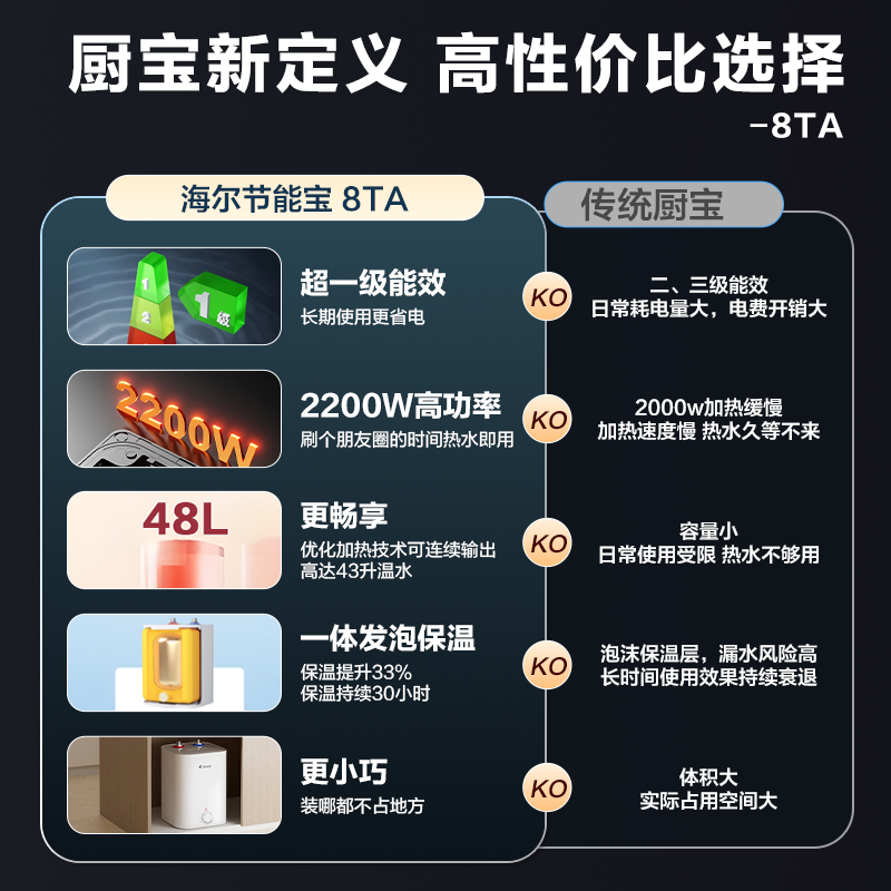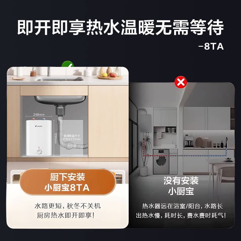 政府补贴海尔统帅小厨宝电热水器官方迷你厨房家用台下6升8升水宝