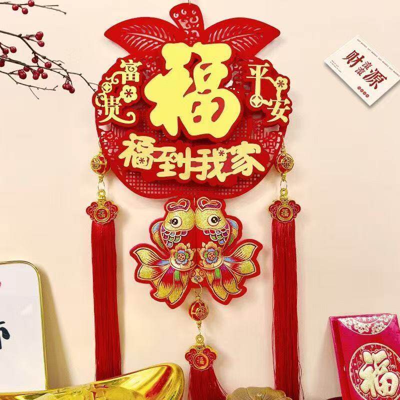 过年2026新款平安福到我家新年挂件喜庆中国结客厅背景墙装饰室内