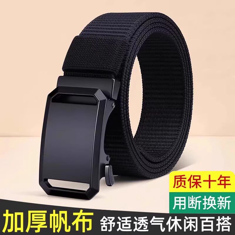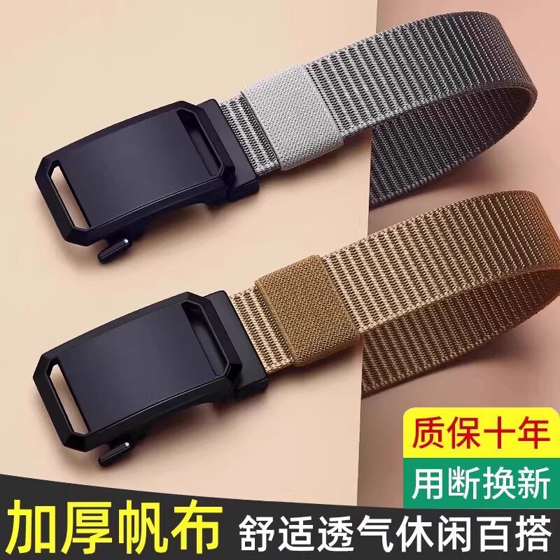 2026新款男士帆布尼龙皮带无孔自动扣腰带超轻薄耐用男款耐磨结实