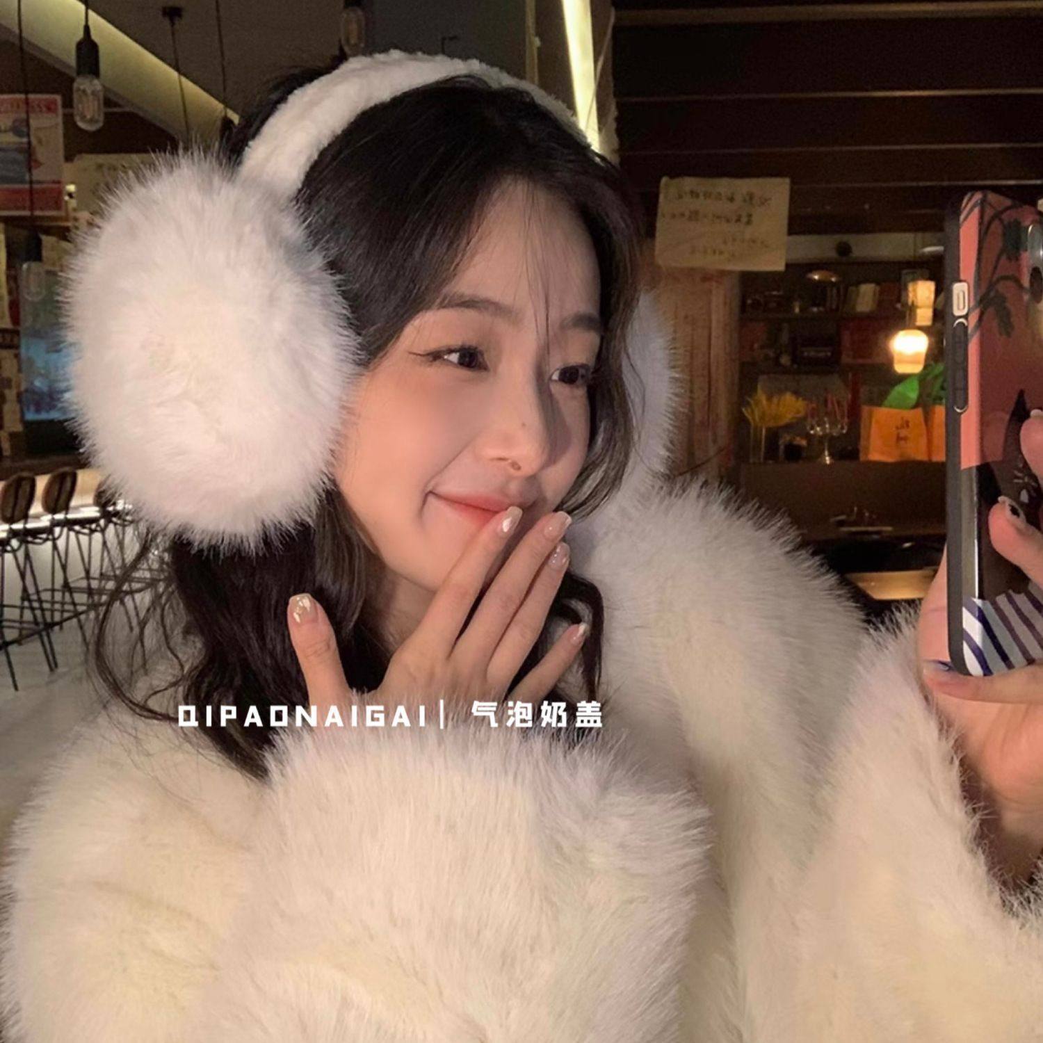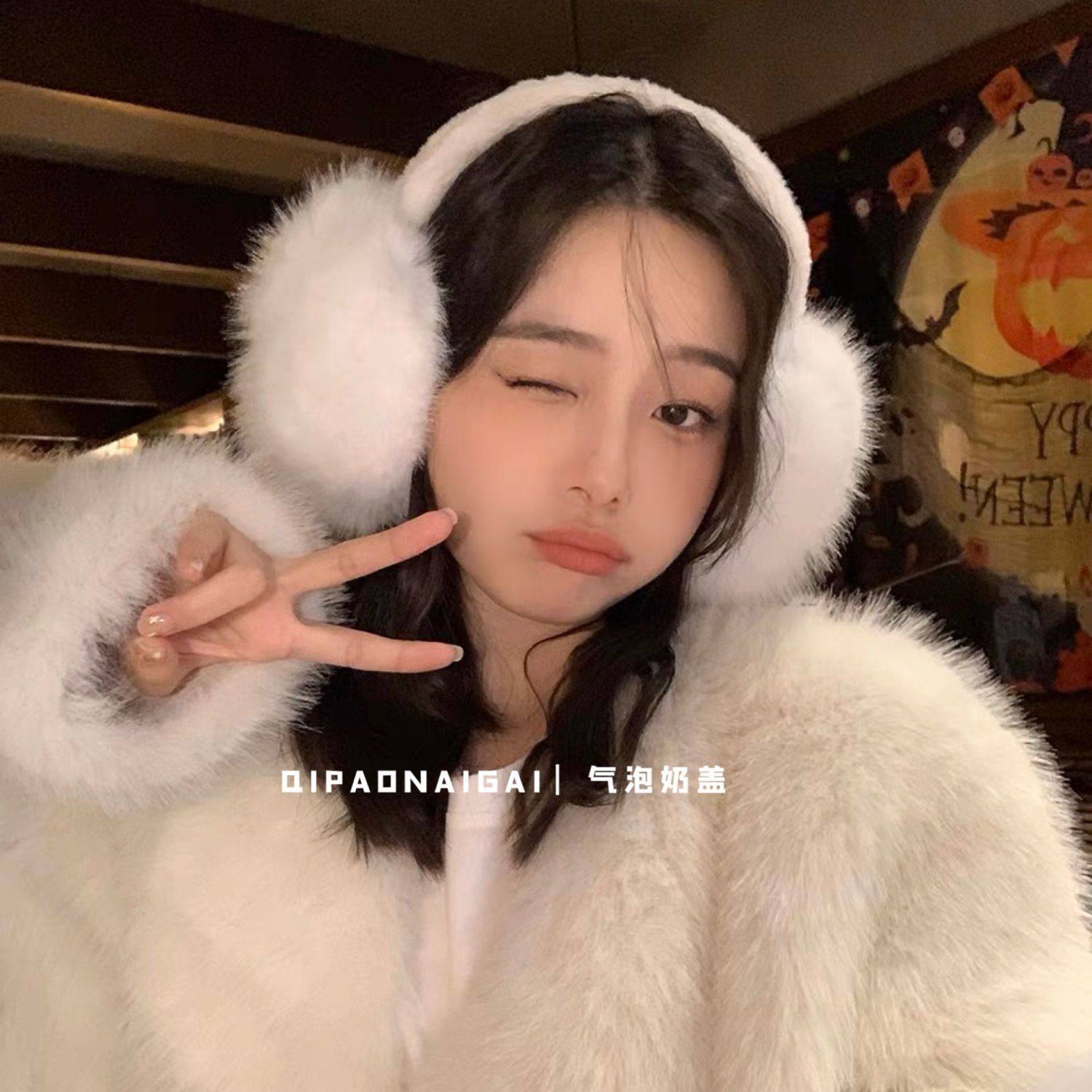 白色韩版软萌可爱大号毛绒耳捂子保暖防冻护耳冬季耳罩女耳套KS型