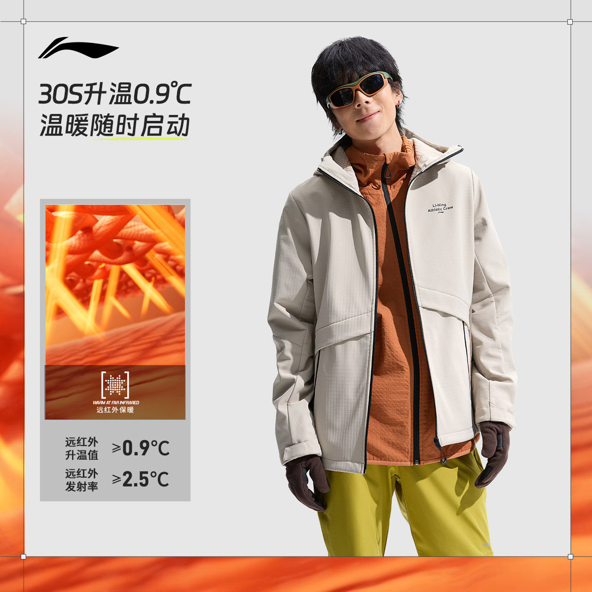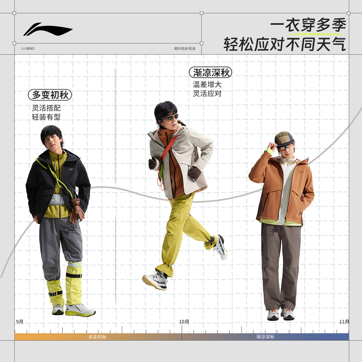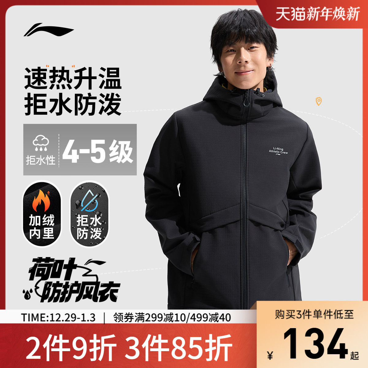 李宁荷叶风衣 |新款连帽外套秋冬加绒防泼水开衫登山运动服男款