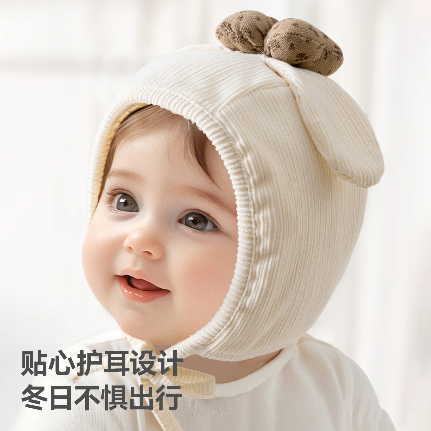 贝肽斯婴儿帽子男女宝宝新生儿胎帽保暖防风加绒加厚儿童护耳帽S