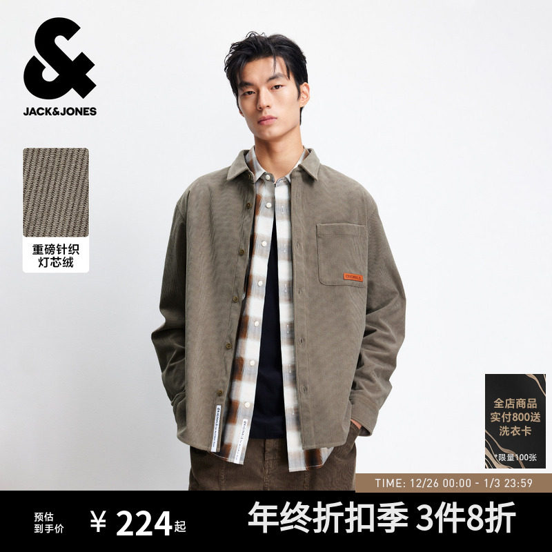 杰克琼斯男装秋季新款衬衫针织灯芯宽松长袖衬衣外套日系工装上衣