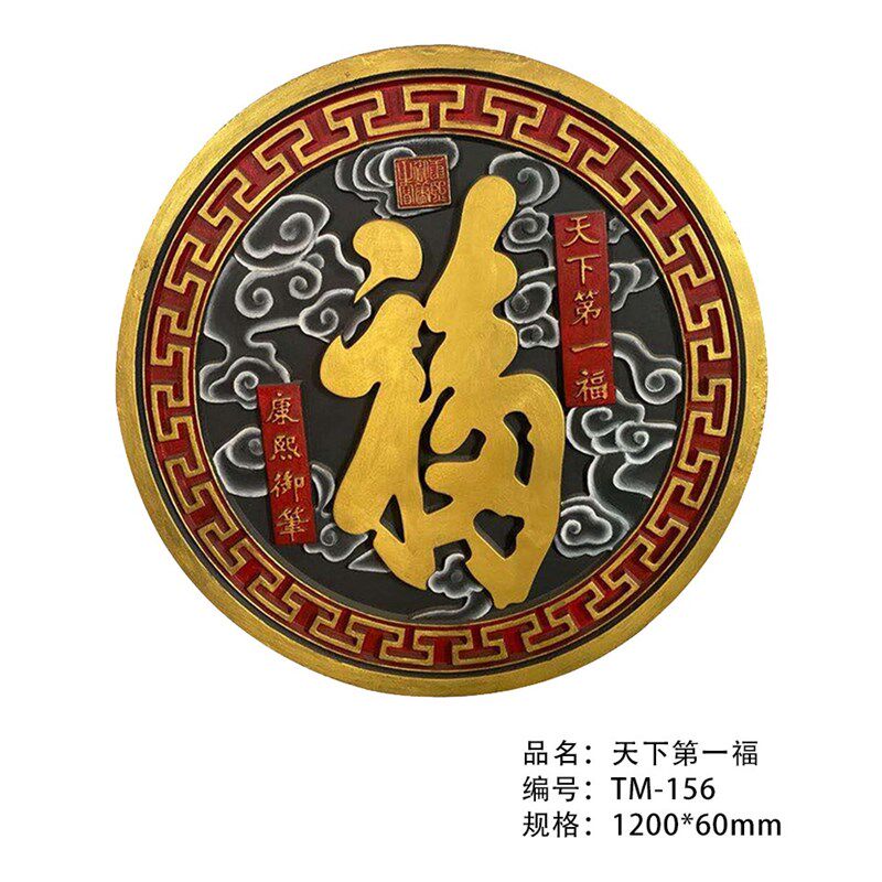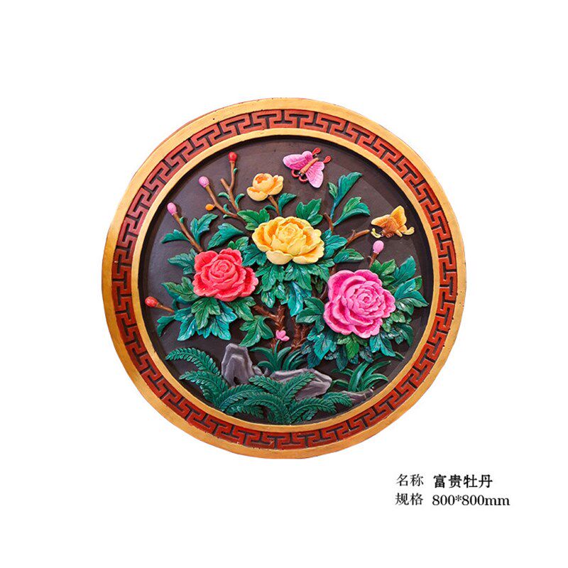 中式古建彩绘圆形福字砖雕 仿古庭院照壁装饰挂饰