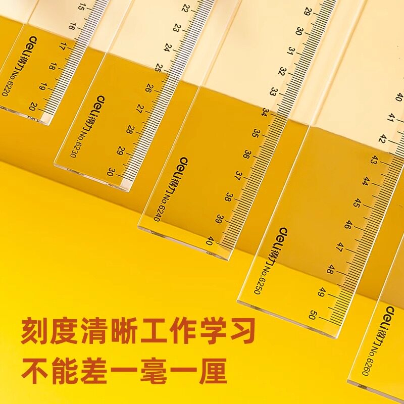 得力文具6220塑料直尺20cm/30cm/40cm/50cm/60cm多规格尺子学生办公绘图制图测量工具办公直尺加厚板尺