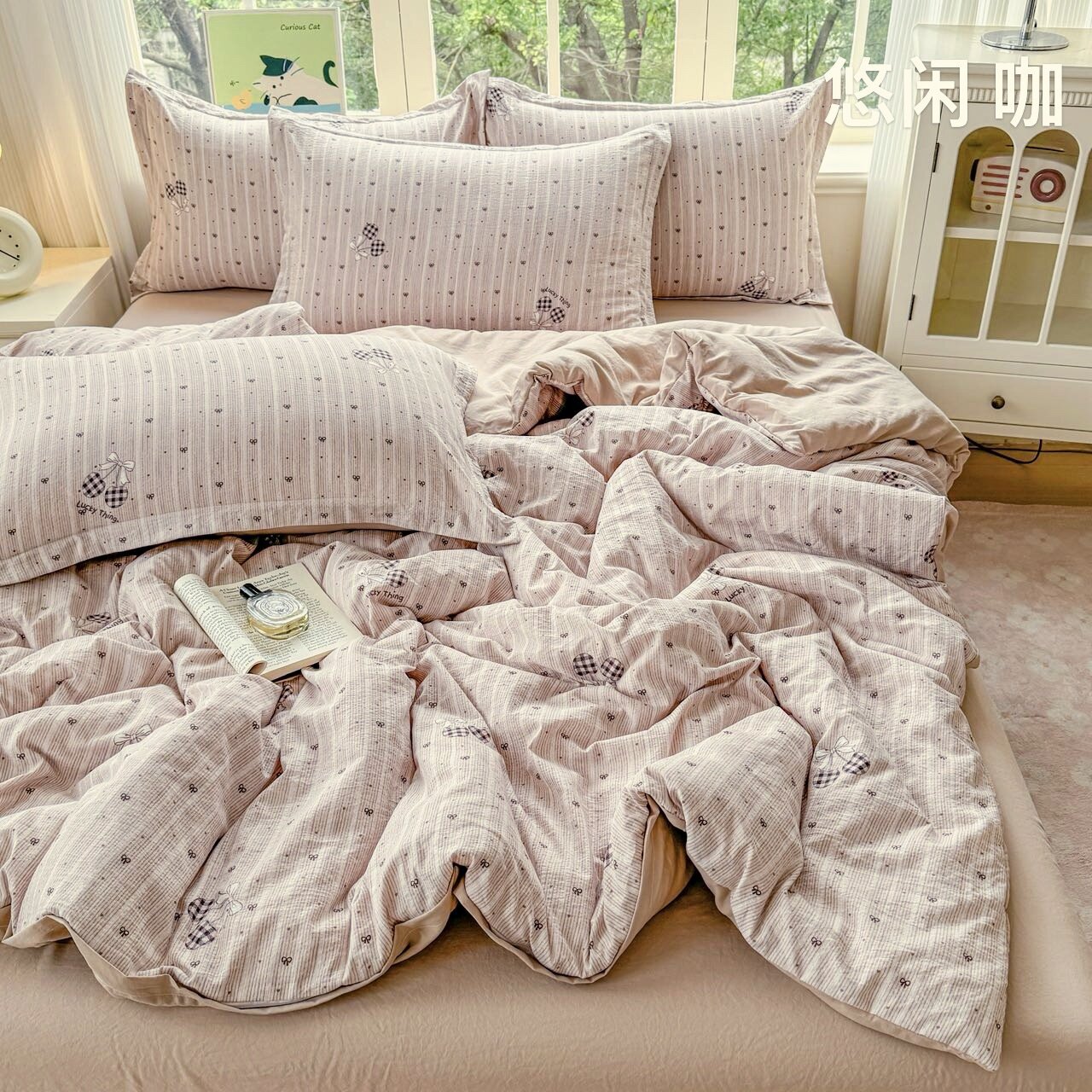 A类纯棉双层纱布四件套新款床上全棉被罩被套床单学生宿舍三件套4