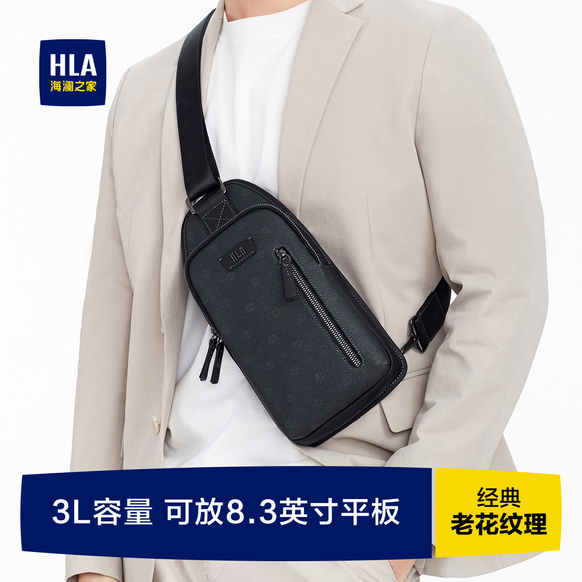 HLA/海澜之家男士胸包单肩多功能多隔层单肩老花斜挎包送老公爸爸