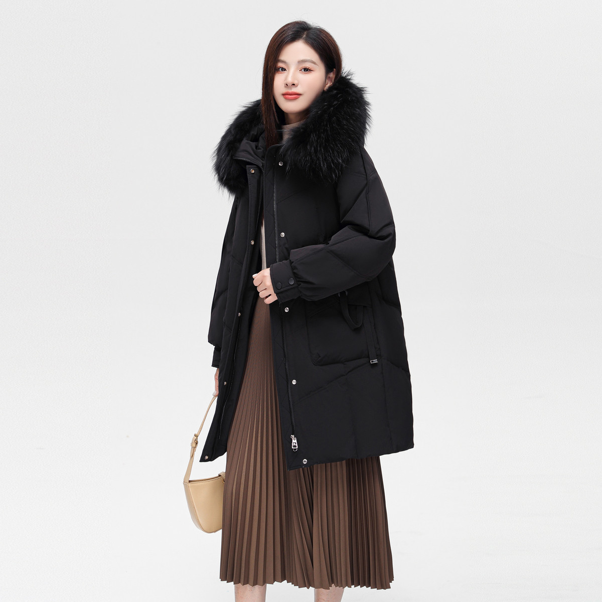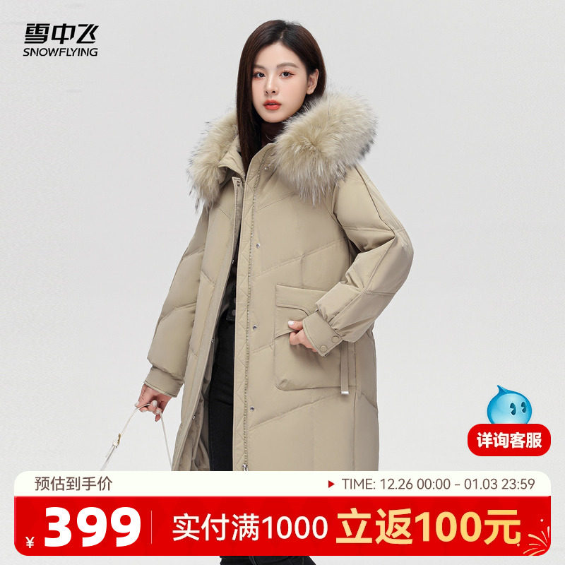 雪中飞2025冬新款女士妈妈款中长款貉子毛领羽绒服时髦潮流保暖