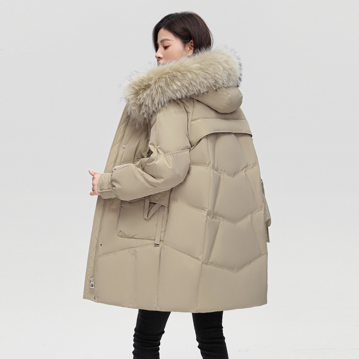 【李佳琦直播间】雪中飞2025鹅绒男女貉子毛领复古工装派克羽绒服