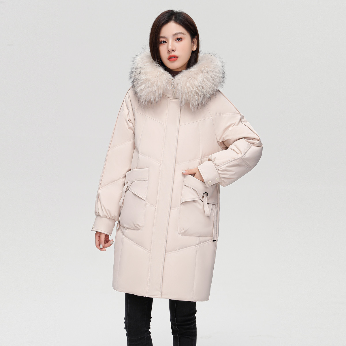 鸭鸭中戏pro羽绒服女冬季反季中长款羽绒服过膝加厚95绒波兰鸭绒J