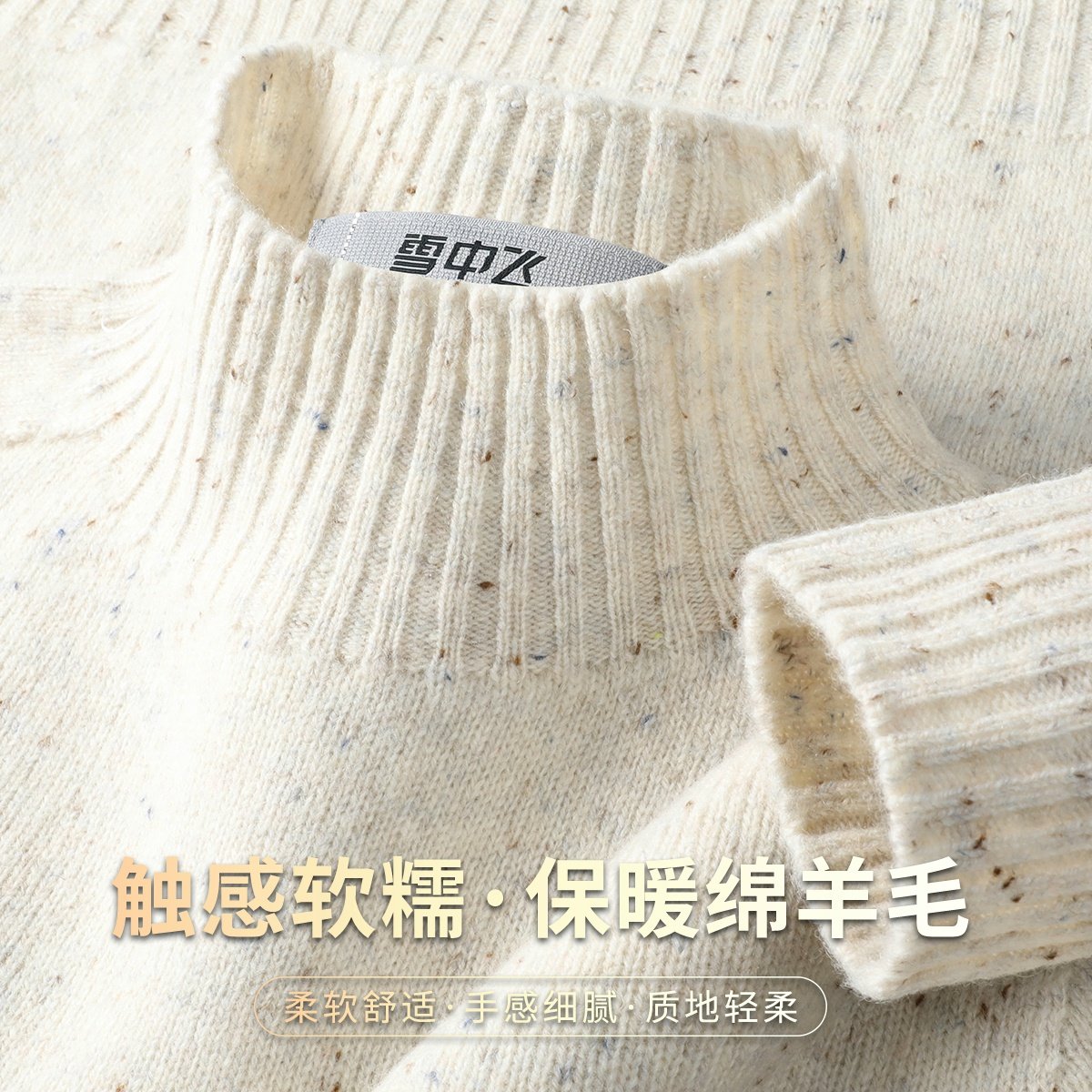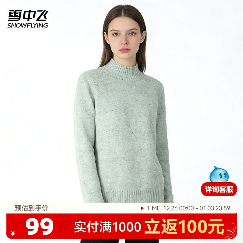 雪中飞25年秋冬【保暖绵羊毛】点子纱半高领休闲舒适女士羊毛衫W