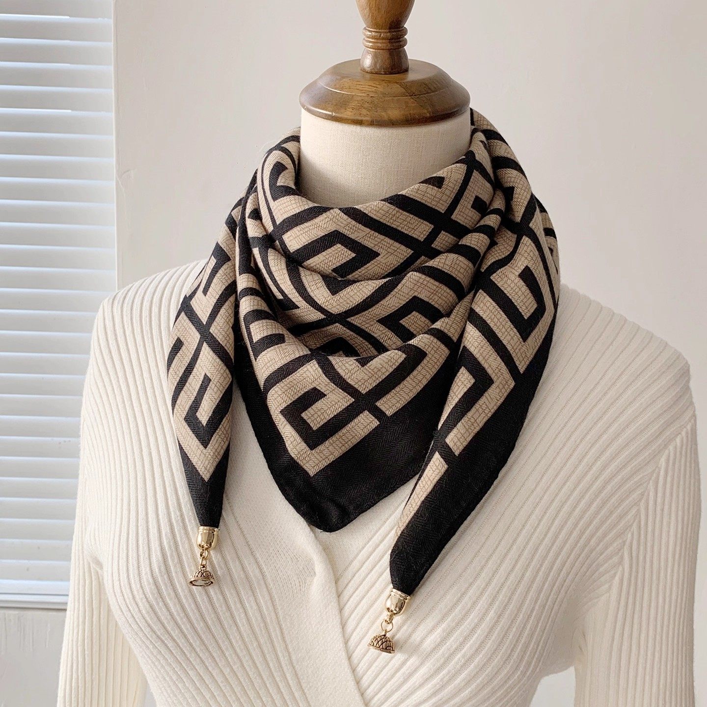 秋冬保暖围脖围巾女2025新款高级感三角巾时尚磁吸扣小方巾丝巾女