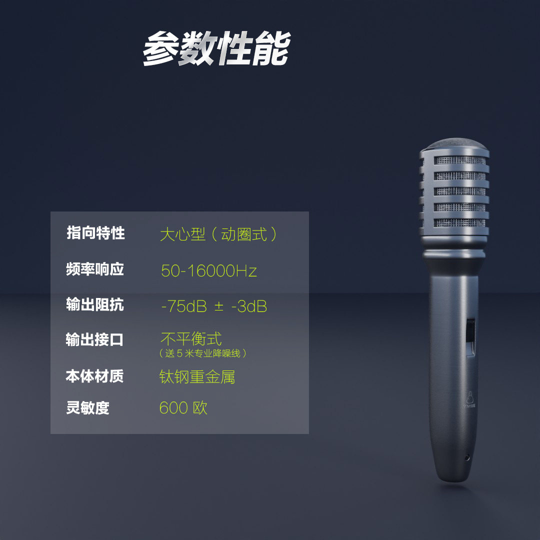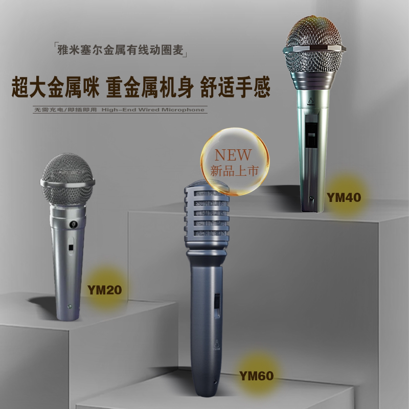 雅米塞尔专业演出级有线话筒家庭KTV防啸叫全金属有线动圈麦