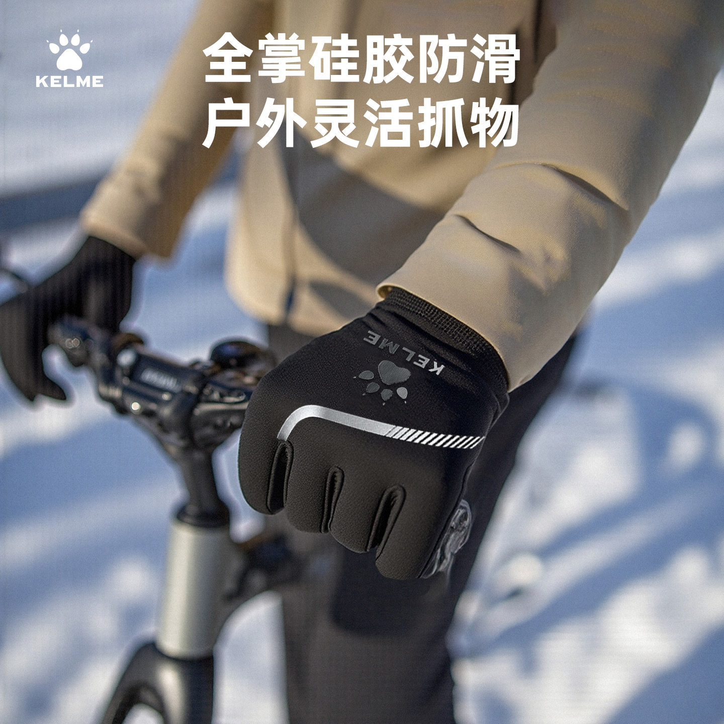 KELME卡尔美冬季户外跑步滑雪骑行防风加绒保暖可触屏足球手套