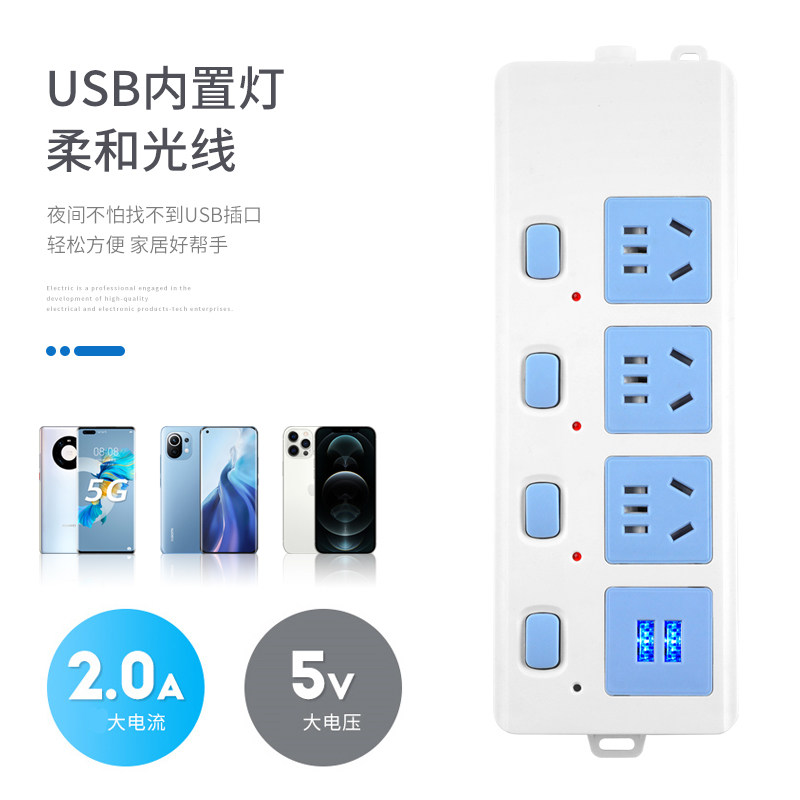 新国标无线插板不带线插线板带地线排插安全门自接线电源插座纯铜