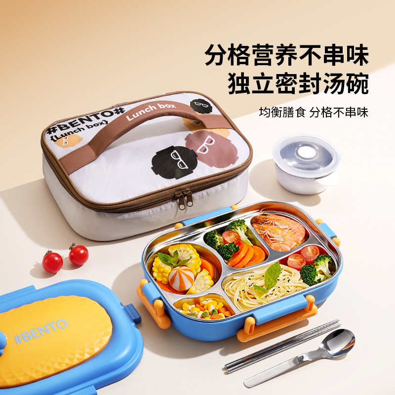 儿童保温饭盒初中小学生上学专用不锈钢餐盒一年级分格便当盒新款
