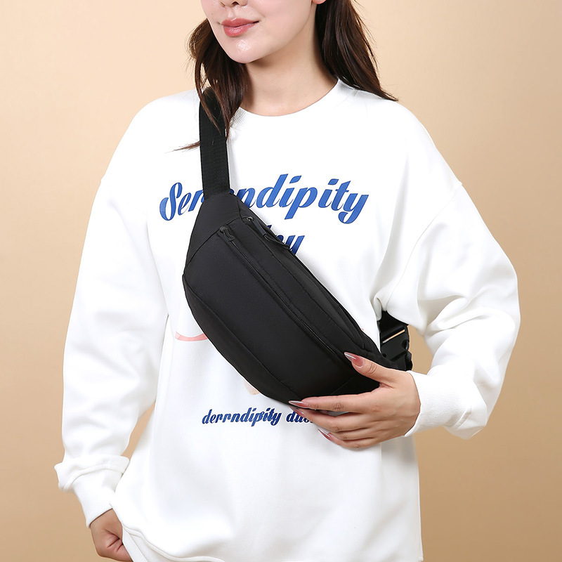 纯色腰包女简约休闲旅行单肩斜挎包运动手机包户外时尚胸包潮防水
