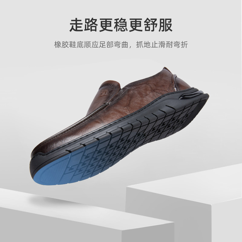 奥康官方男鞋春秋季真皮商务休闲皮鞋时尚套脚平底脚蹬舒适爸爸鞋