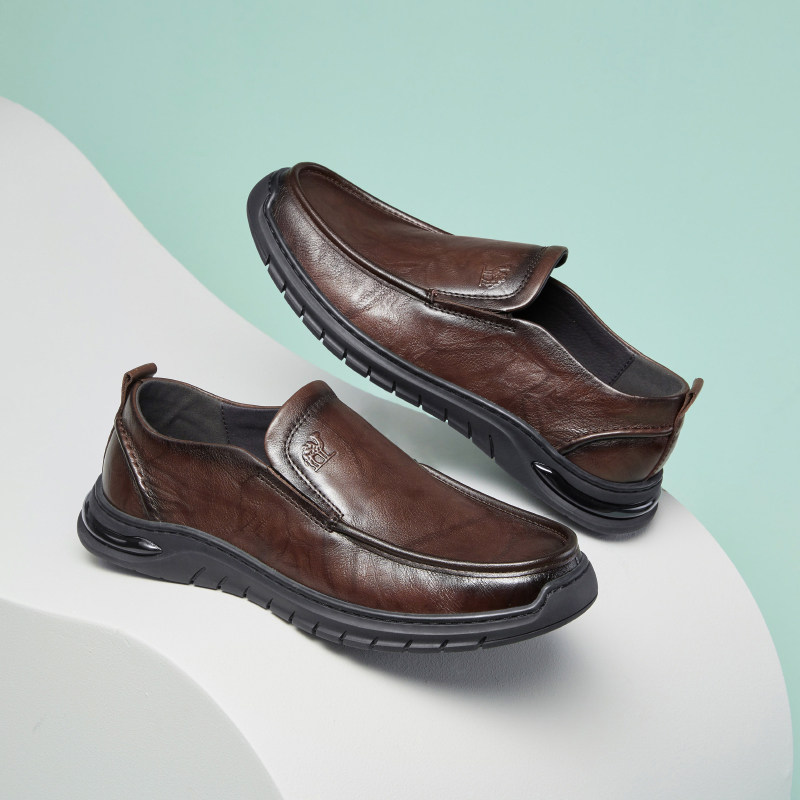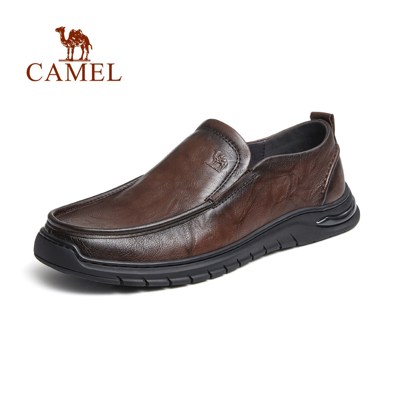 骆驼2025夏季真皮软底乐福舒适手抓纹套脚商务正装休闲男皮鞋