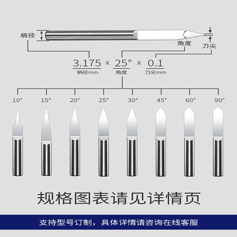 高硬3.175平底尖刀锥度平底刀钨钢cnc雕刻刀木工雕刻刀雕刻机刀头