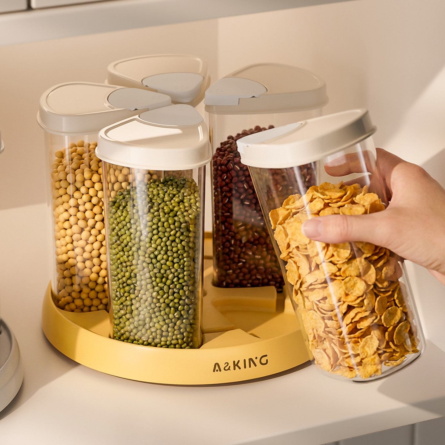 艾仕可五谷杂粮收纳盒旋转米桶家用2025新款粮食防潮储存罐密封桶