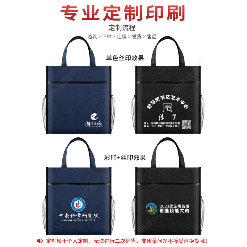 定制中小学生手提拎袋帆布书袋公文件包男收纳补习袋大容量女水杯