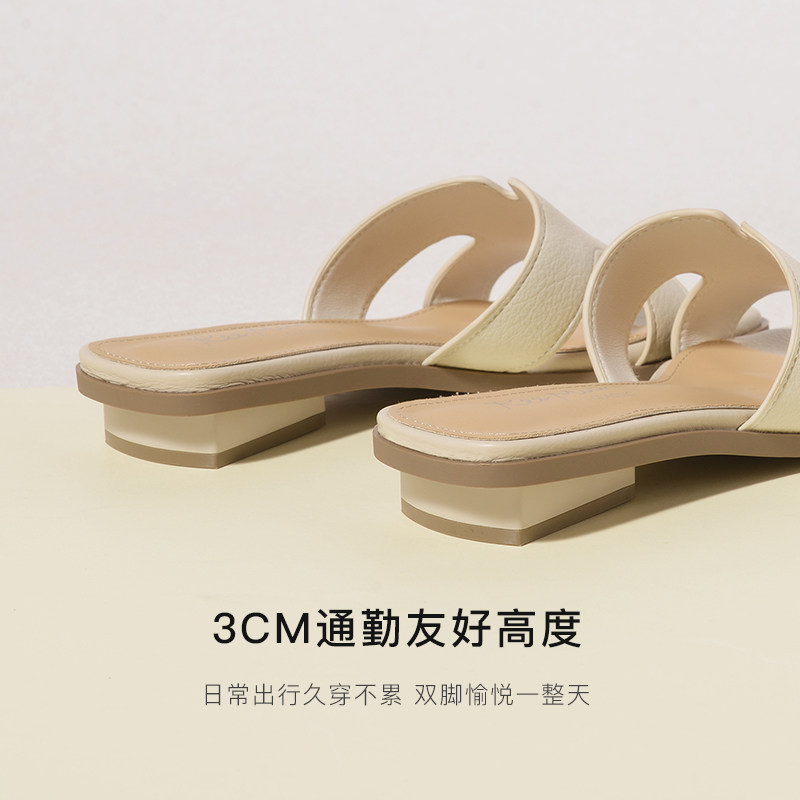 REEMOOR睿慕2025夏季新款仙女风凉拖鞋平底拖女一字拖【跟高3cm】
