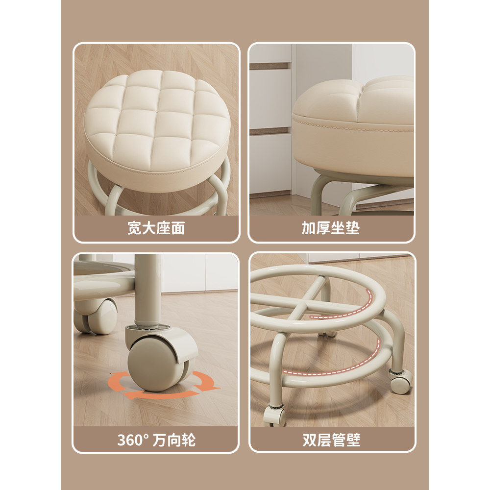 万向轮小凳子家用换鞋凳移动旋转带娃圆凳久坐舒适拆快递滑轮矮凳