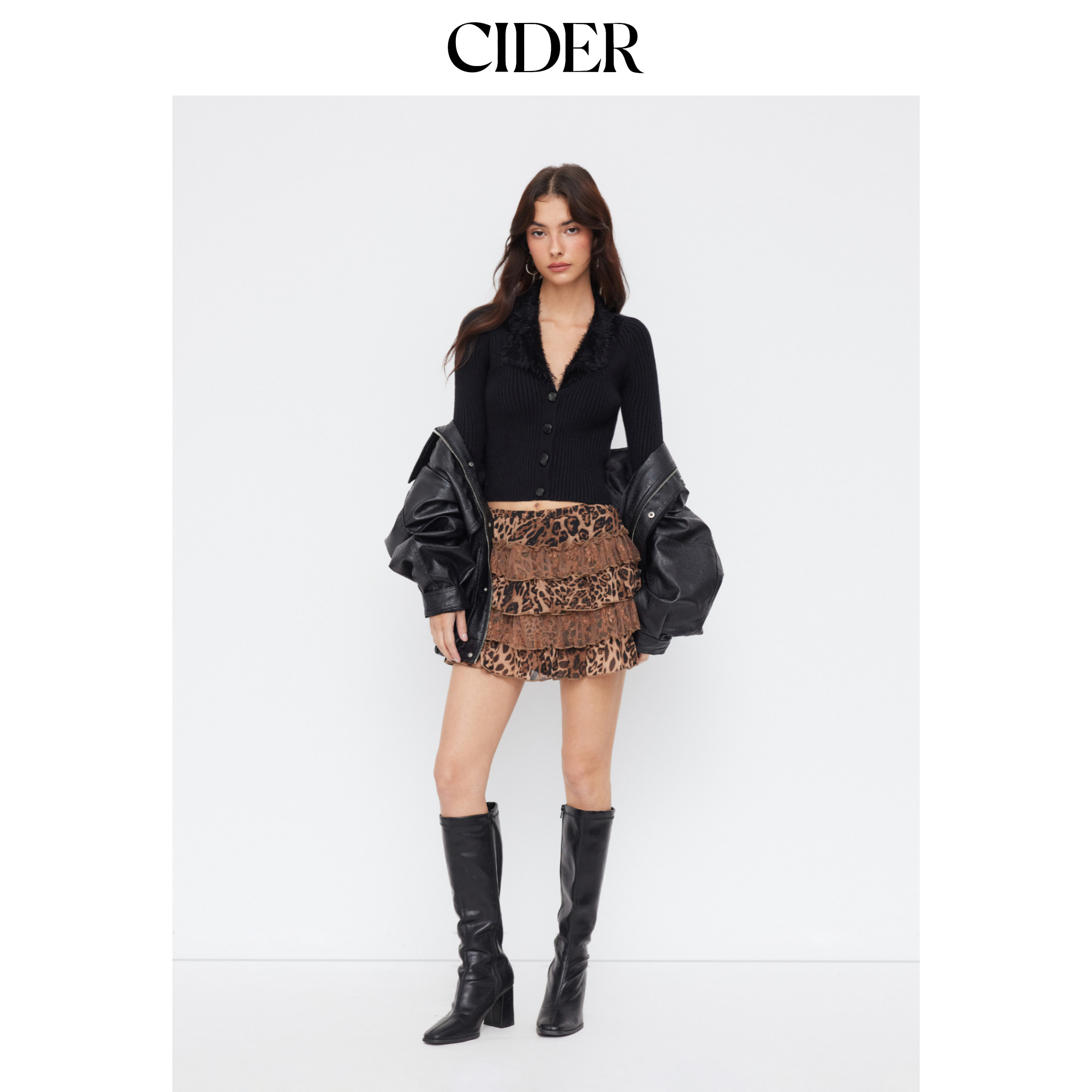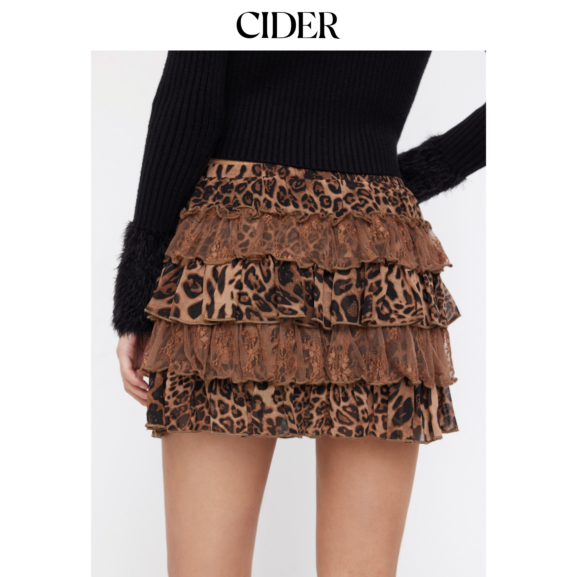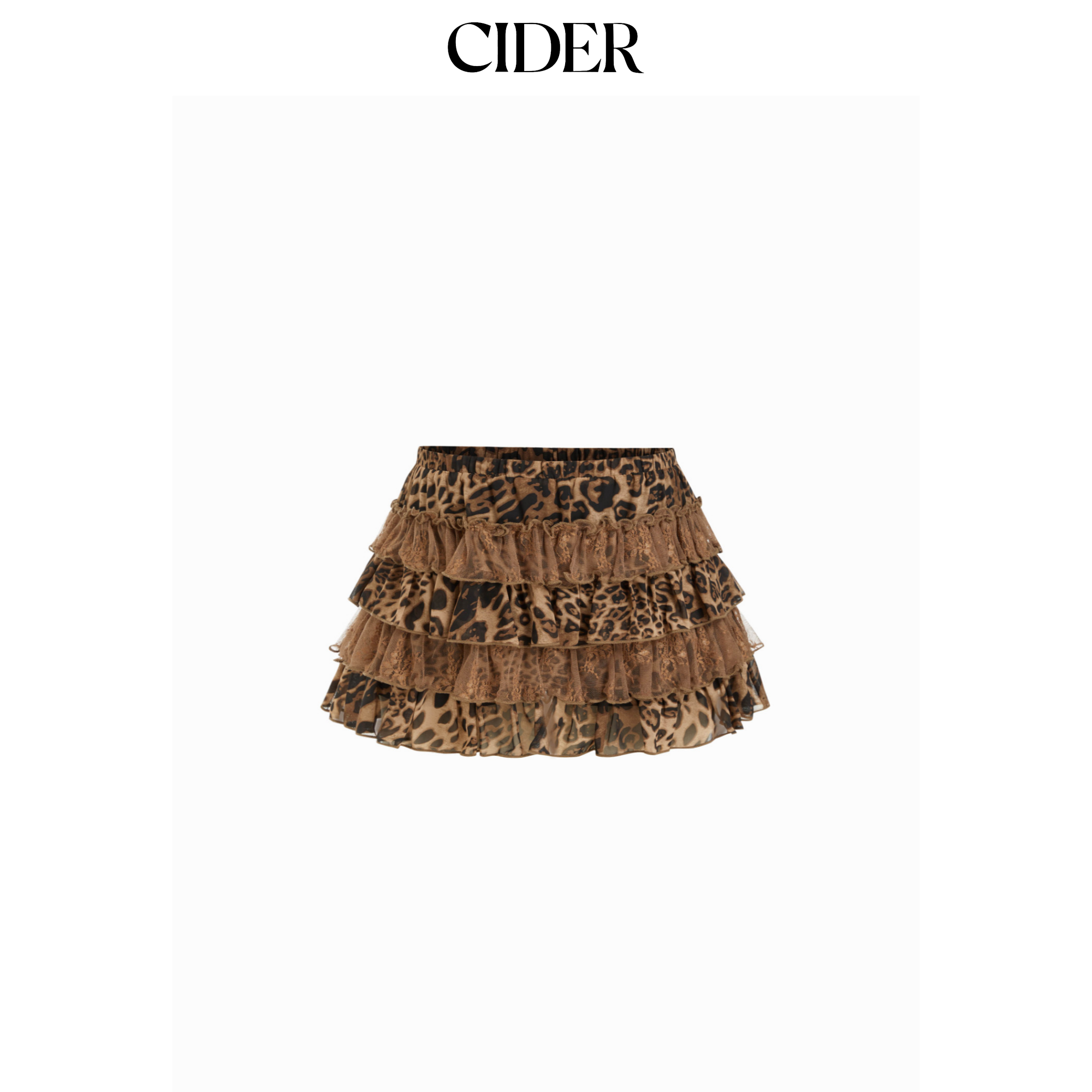 CIDER雪纺低腰豹纹荷叶边层叠迷你半身裙115137181