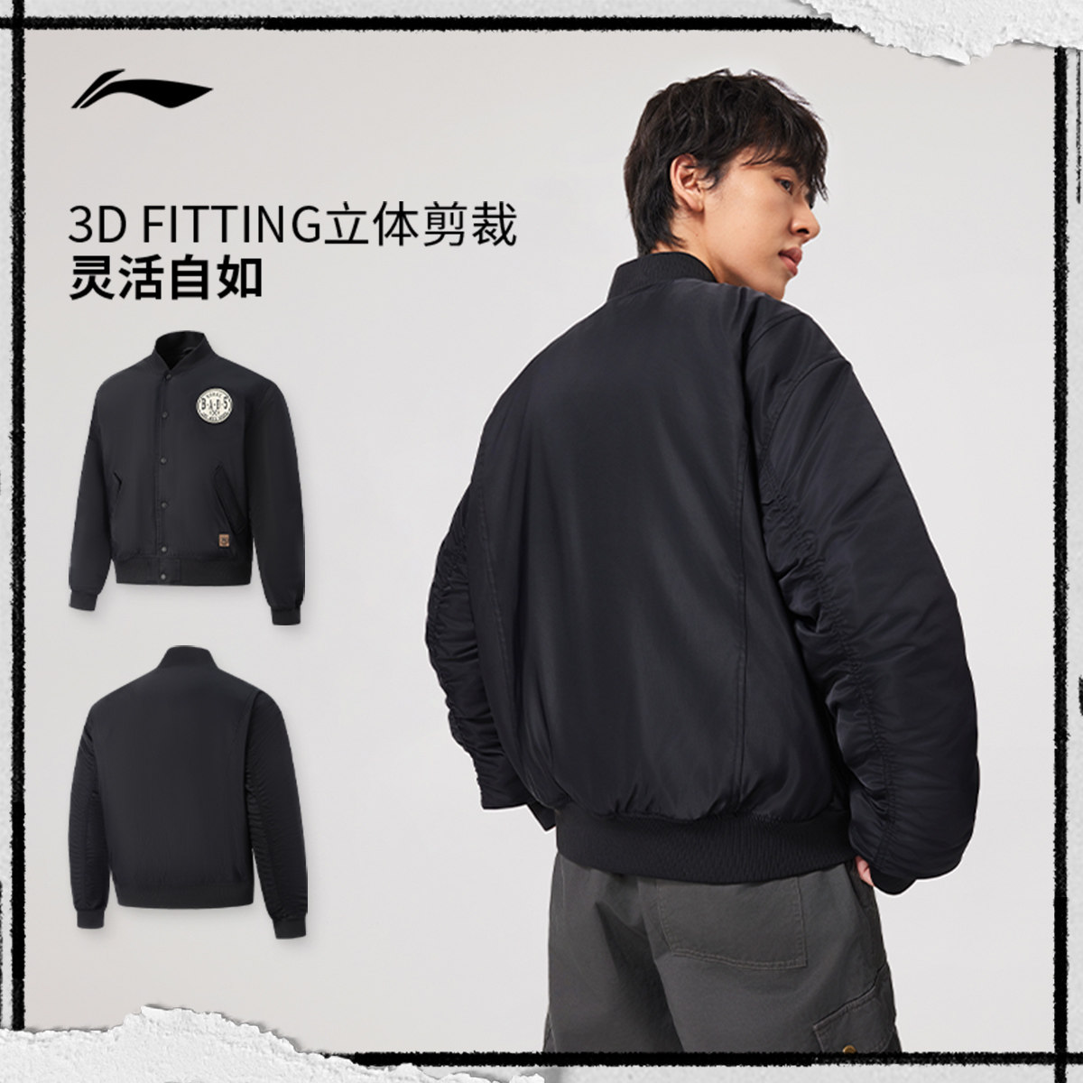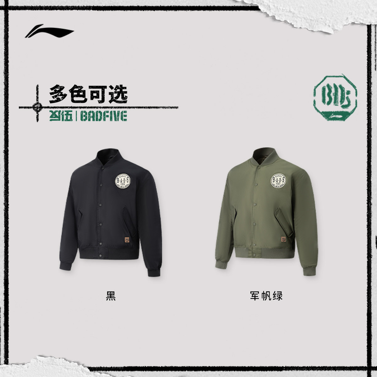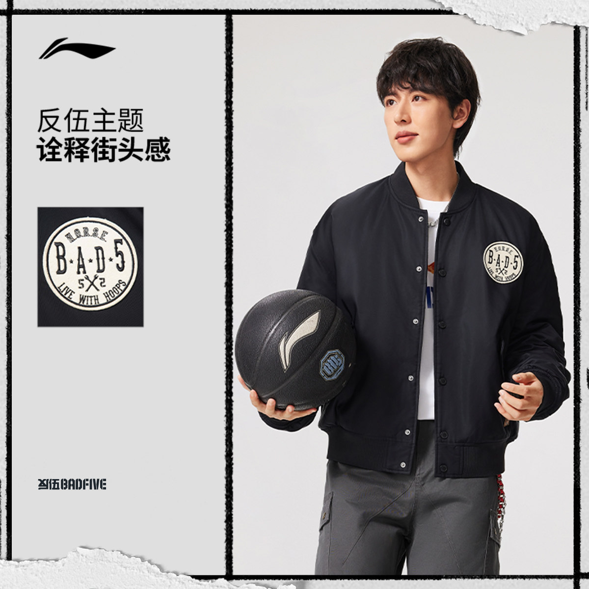 李宁反伍BADFIVE夹克男士春季2026新款棉服宽松运动街头感棒球服
