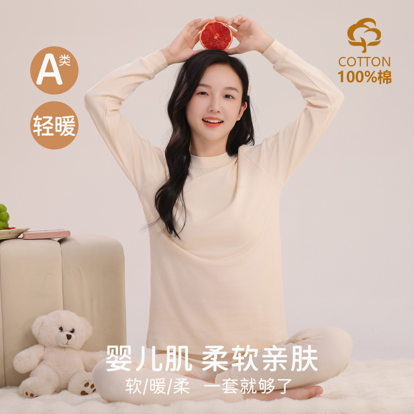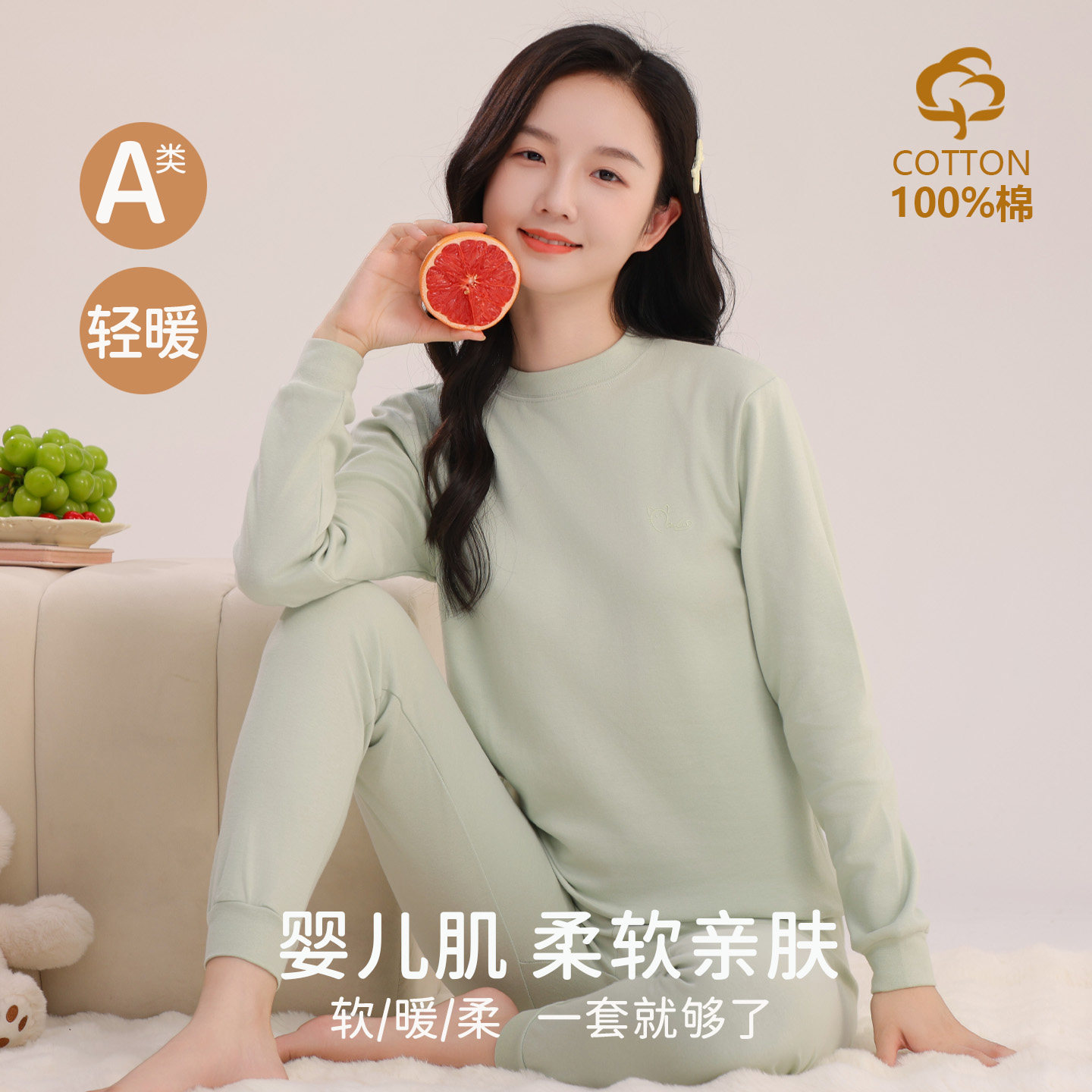 青少年秋衣秋裤套装女大童初中高中生学生纯棉a类保暖内衣棉毛衫