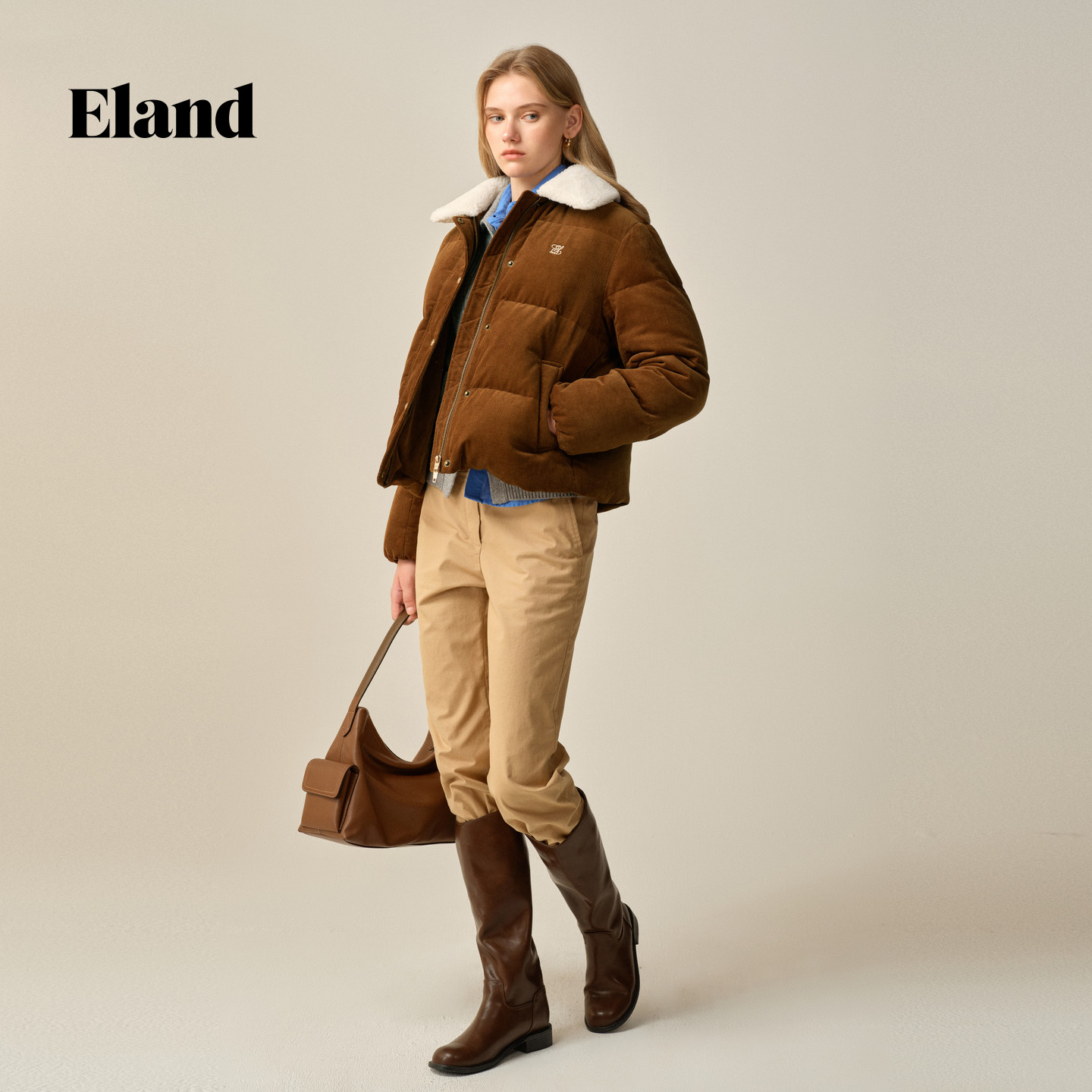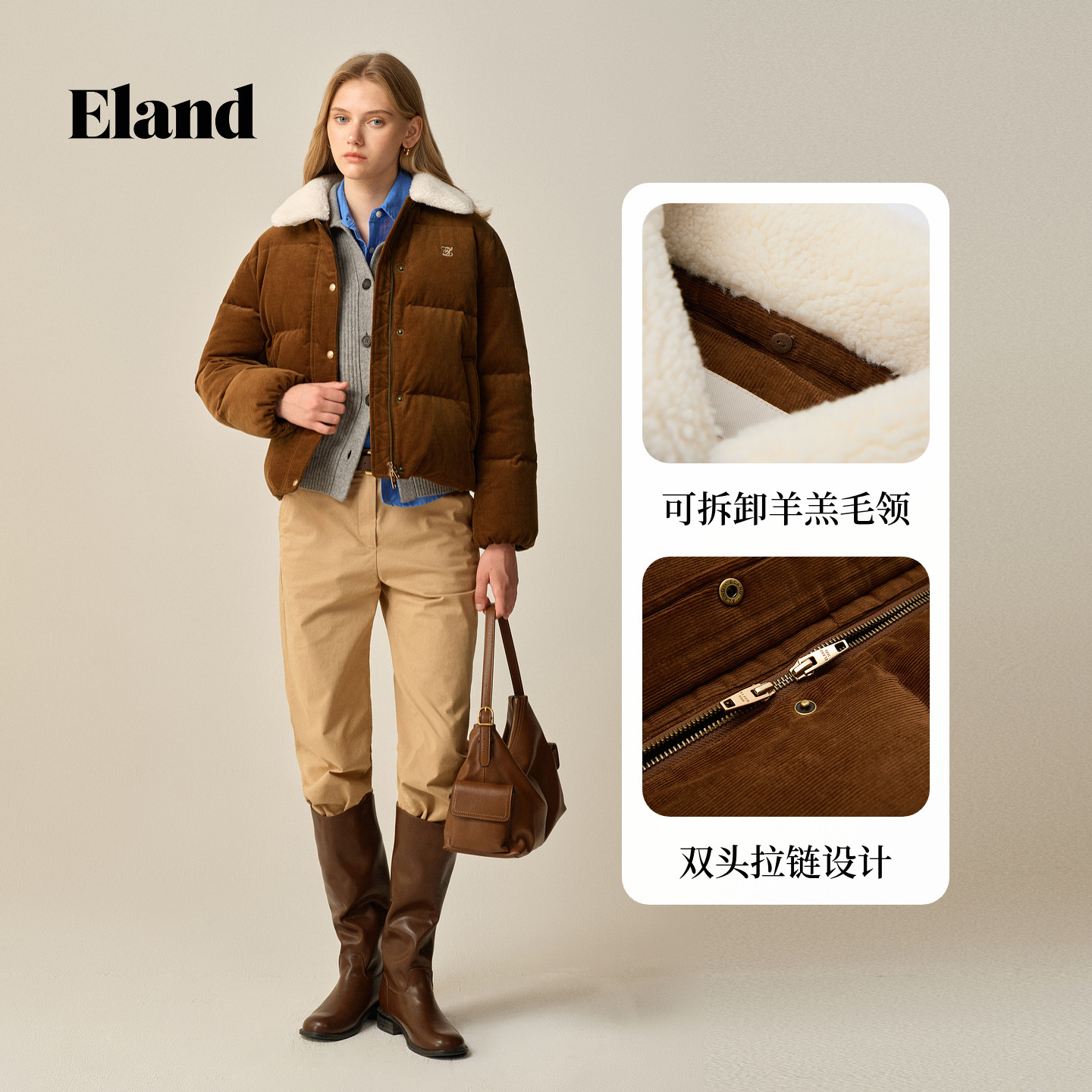 Eland衣恋羽绒服女气质短款蓬松鸭绒可拆卸毛领外套2025冬季新款