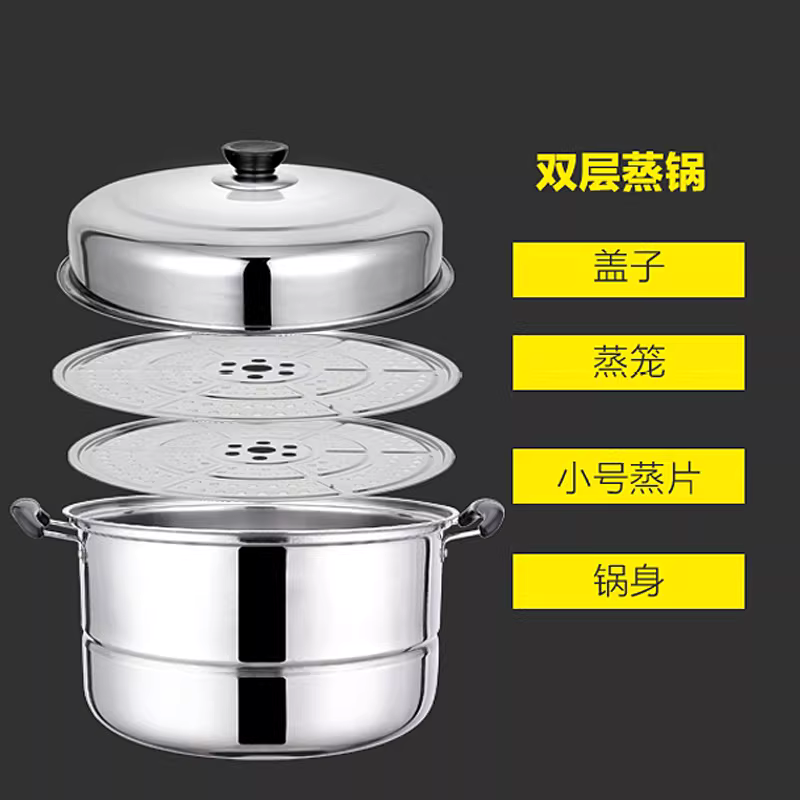 加厚不锈钢双层蒸锅家用锅大号汤锅蒸馍蒸鱼锅电磁炉煤气灶三层