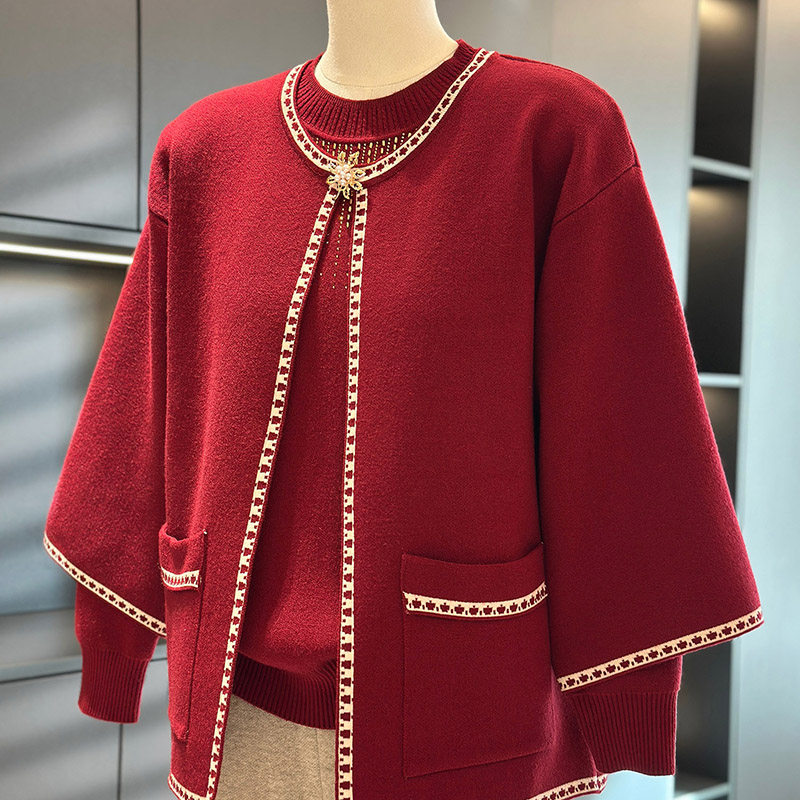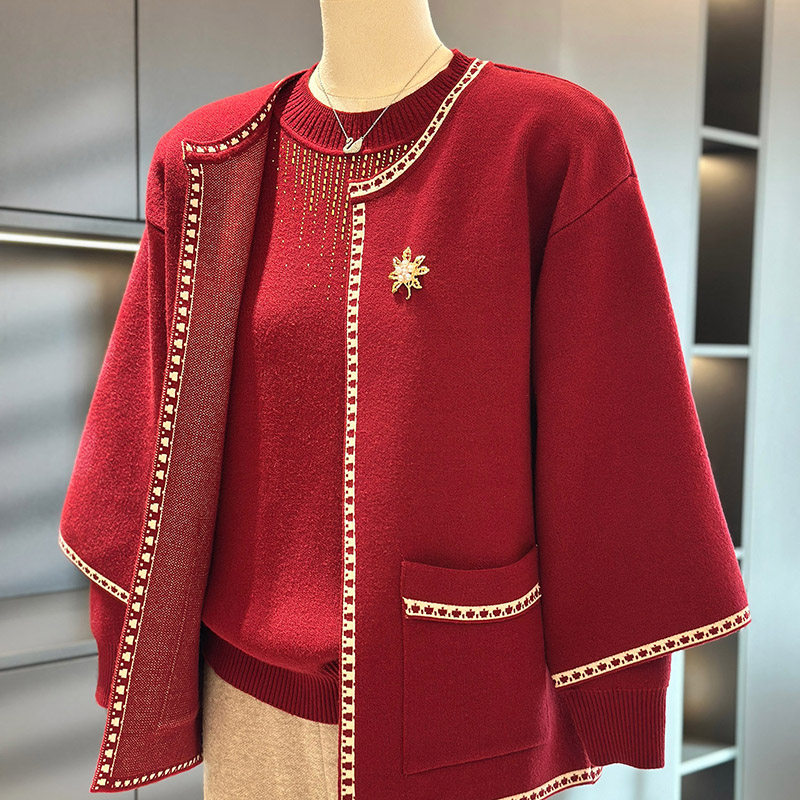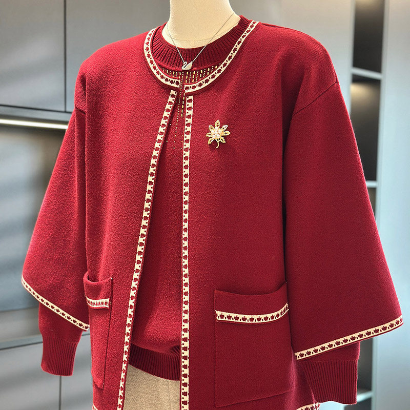 中老年女装针织衫套装婆婆装冬季新款洋气妈妈装秋装毛衣两件套