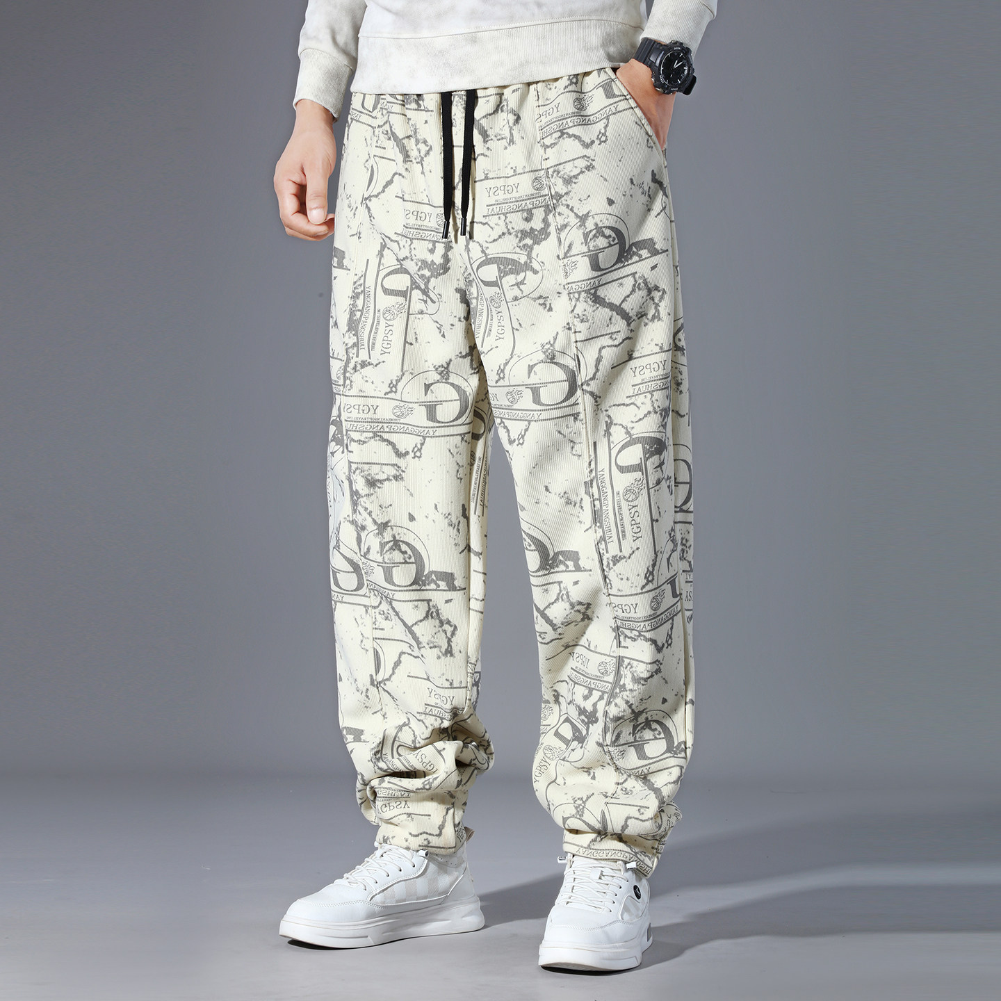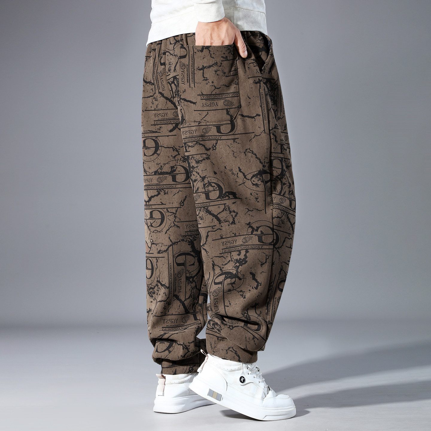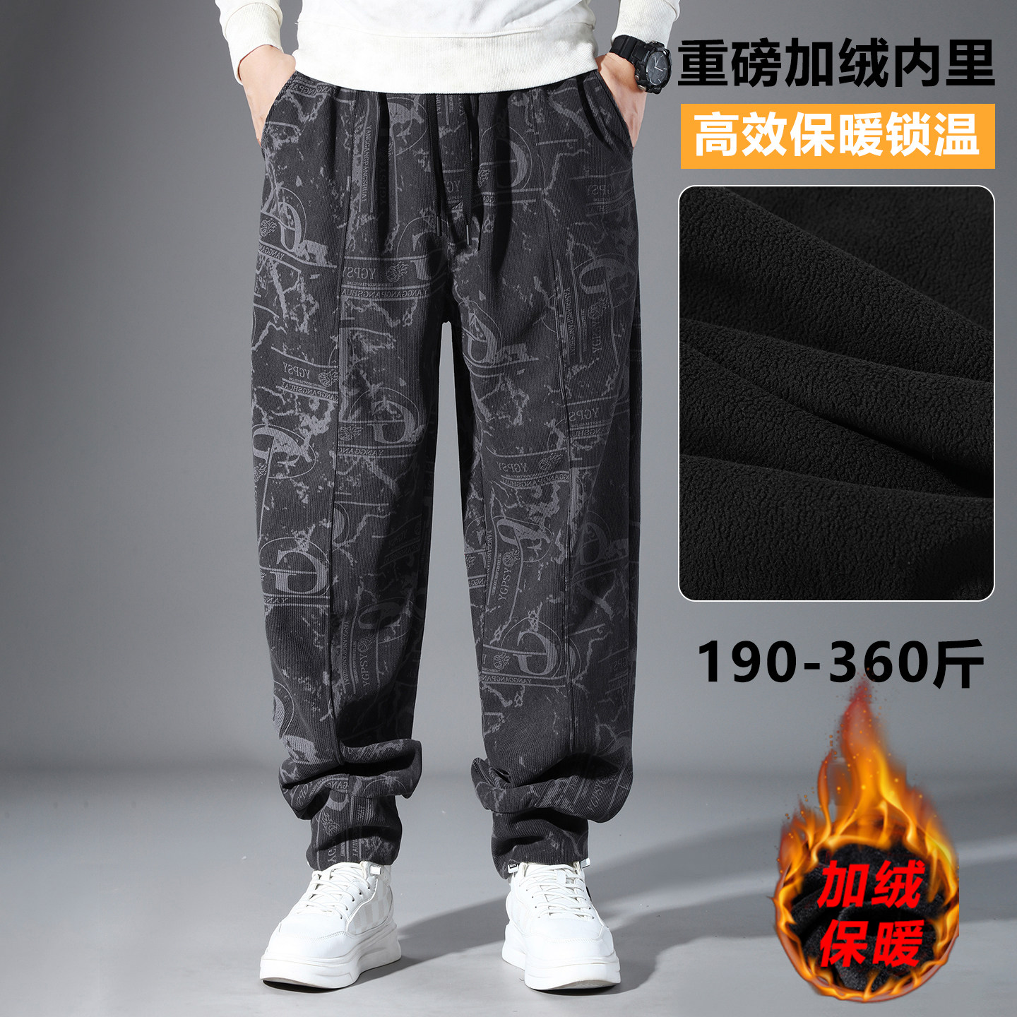 350斤秋冬加绒长裤男休闲裤潮流宽松百搭加肥加大高腰束脚哈伦裤