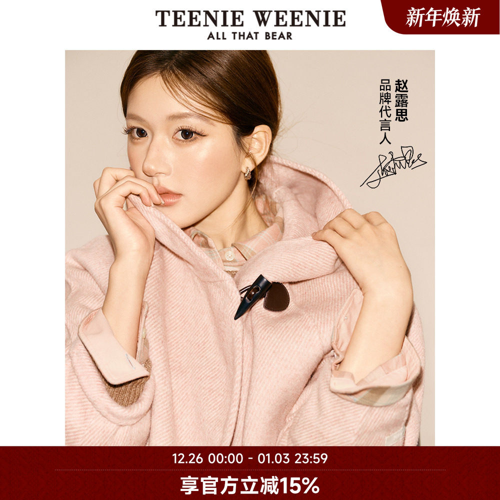 【赵露思同款】TeenieWeenie小熊奥莱牛角扣连帽双面毛呢大衣