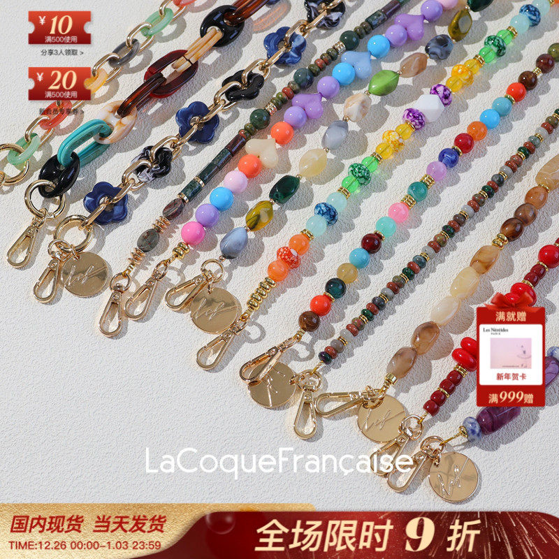 法国LaCoqueFrancaise明星款高级感彩色串珠编织可斜挎包腕手机链