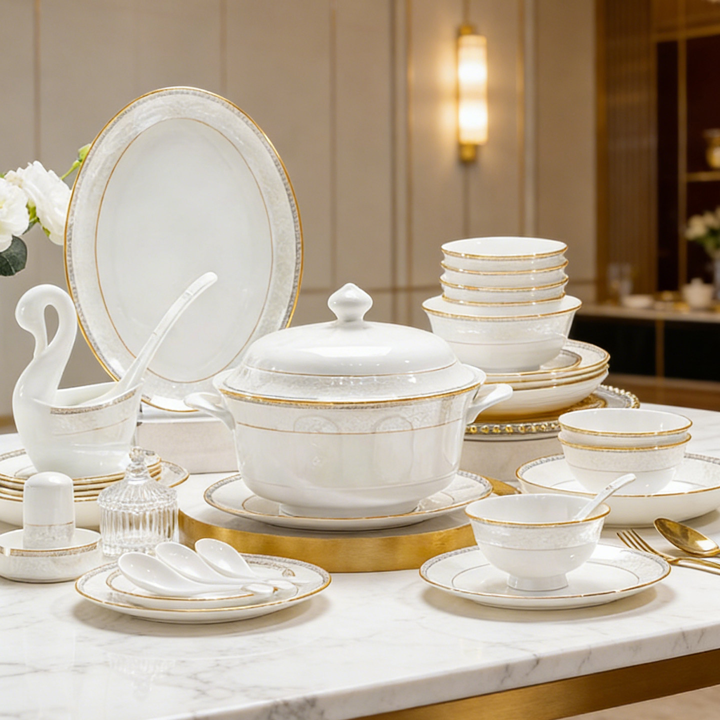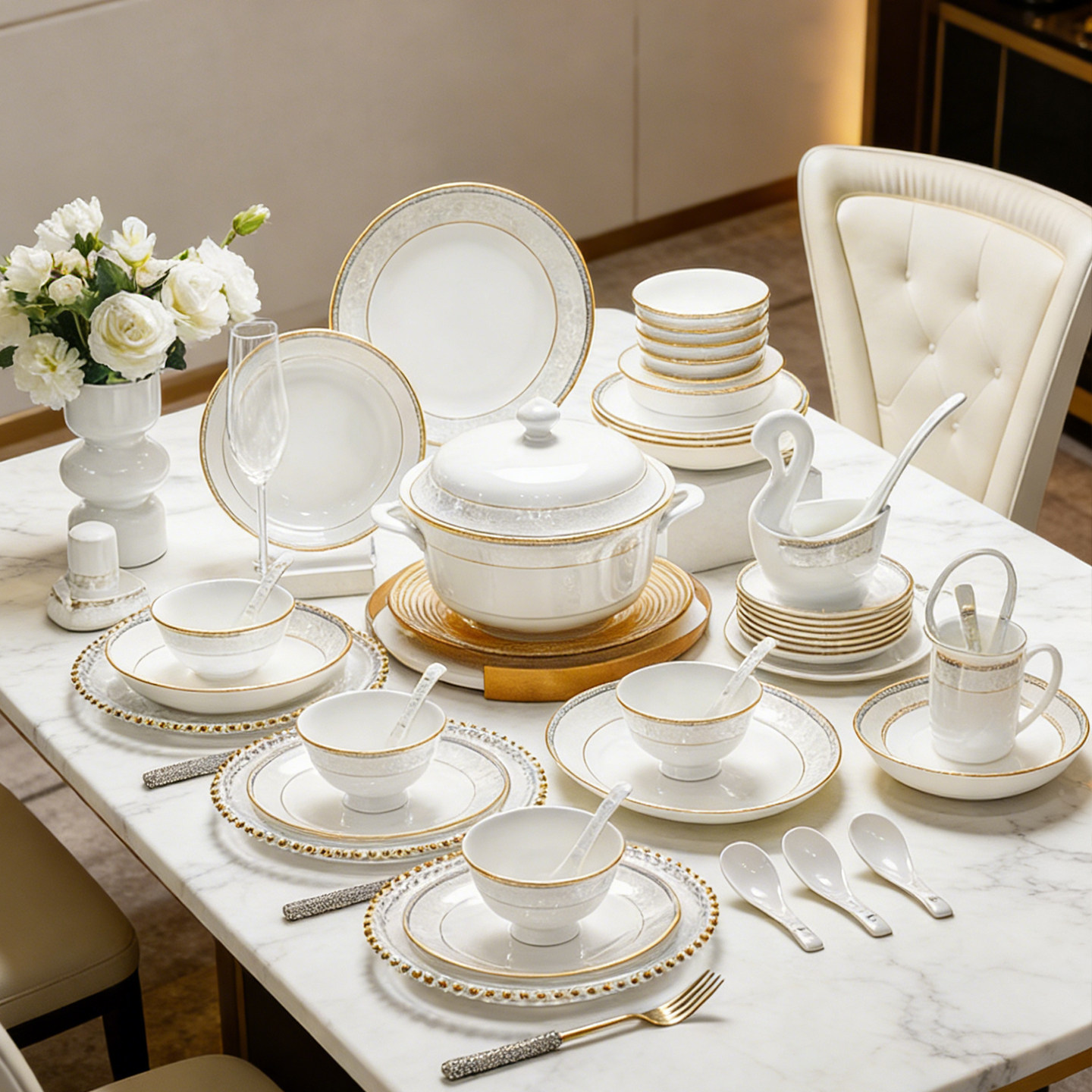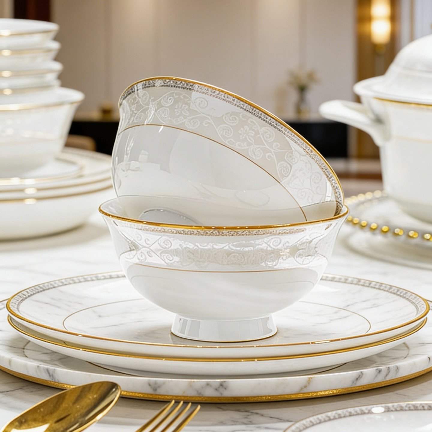 2026景德镇碗碟套装欧式高颜值简约陶瓷骨瓷餐具套装碗盘乔迁新居