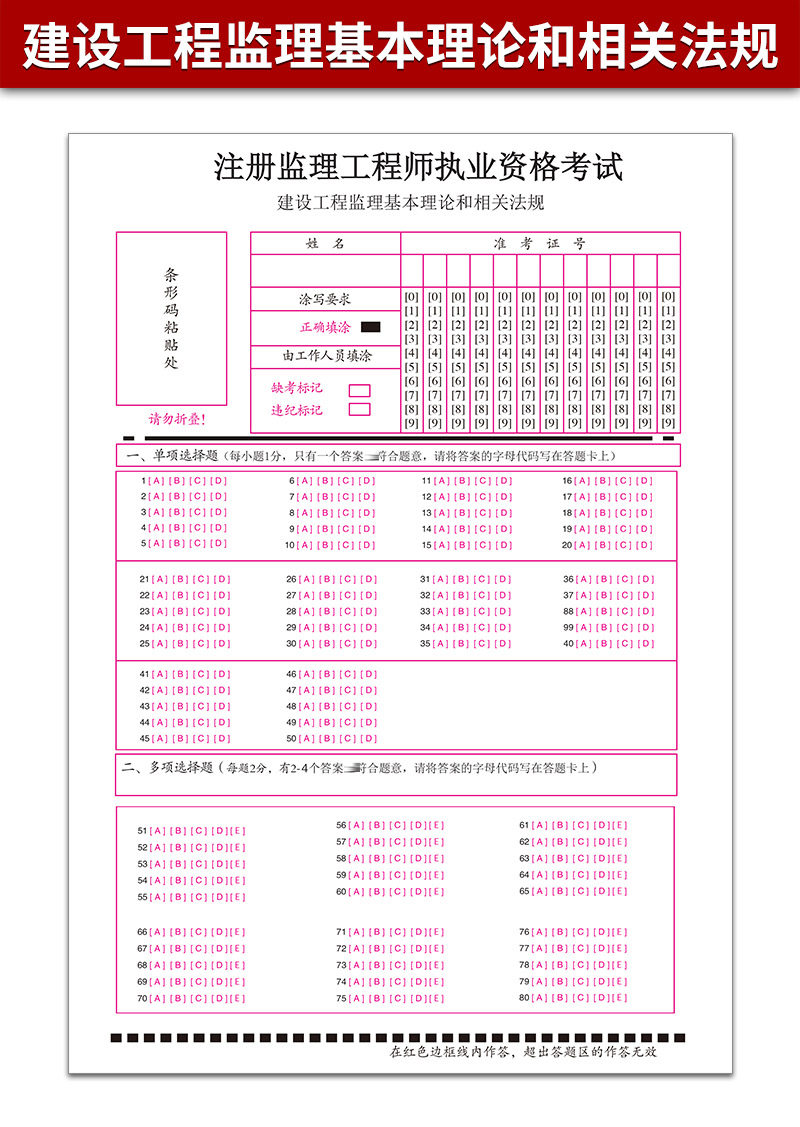 注册监理工程师执业资格考试 建设工程监理基本理论和相关法规答题卡 A5规格单面书写 120克双胶纸 质量媲美