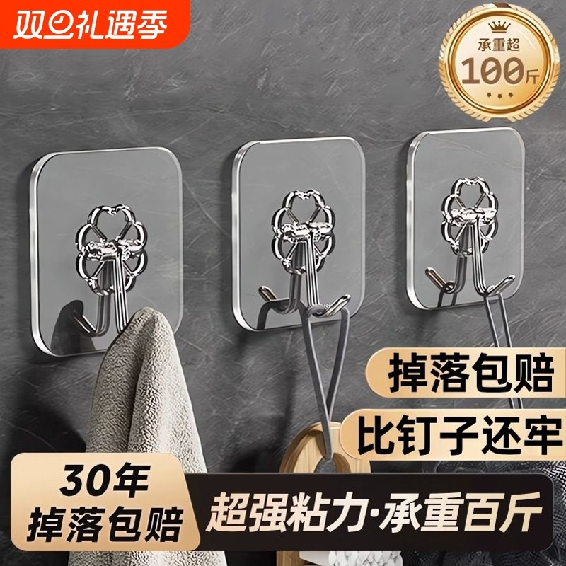 挂钩强力粘胶粘钩免打孔门后墙壁无痕承重厨房浴室挂衣钩子粘贴