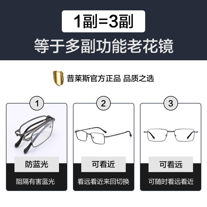 普莱斯老花镜男高清老人智能远近两用折叠便携式防蓝光抗疲劳眼镜