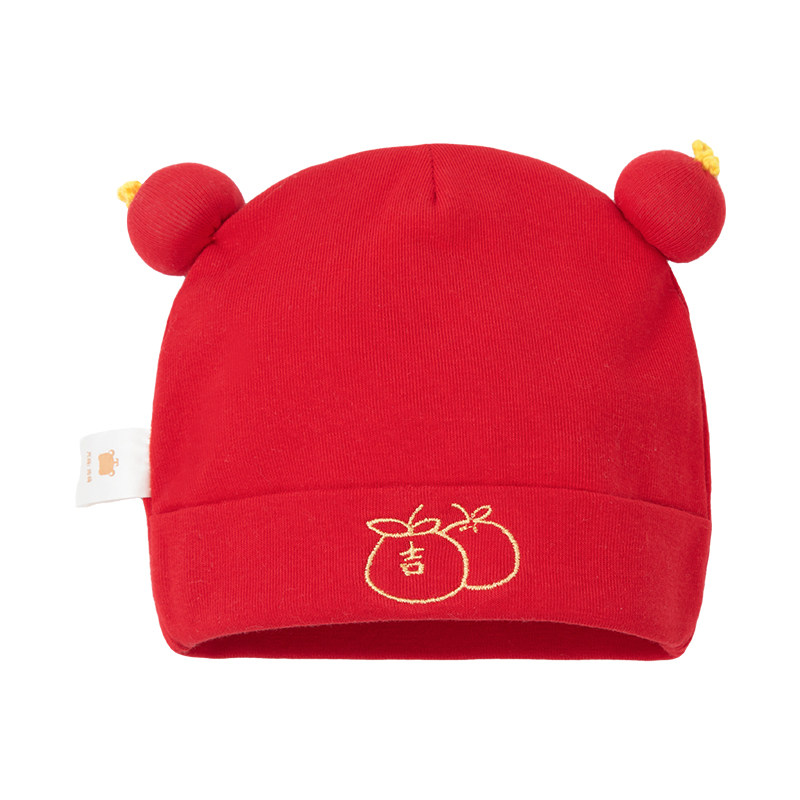 婴儿帽子秋冬季新生儿小月龄红色胎帽宝宝满月过年纯棉新年套头帽