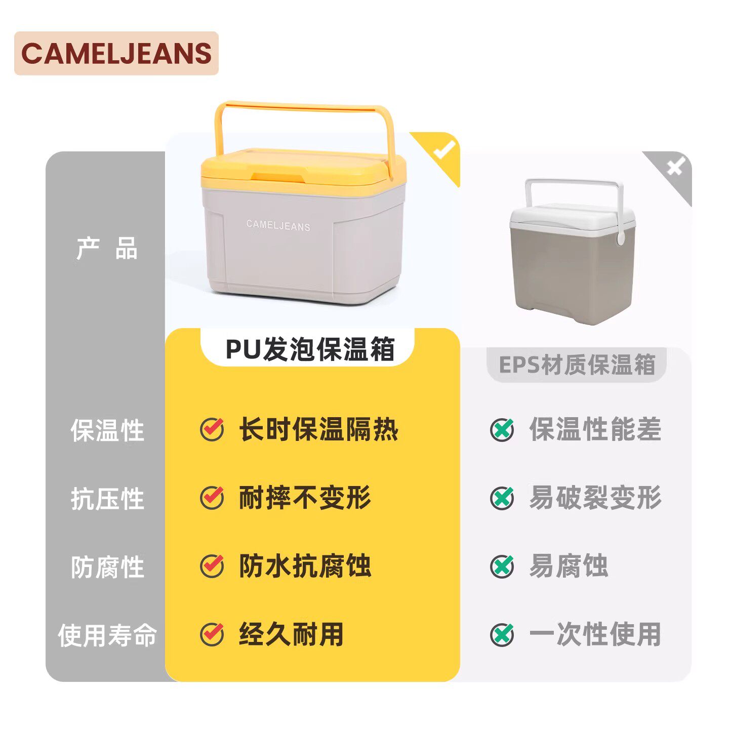 cameljeans保温箱PU食品专用户外露营野餐商用摆摊冷藏箱车载饭菜